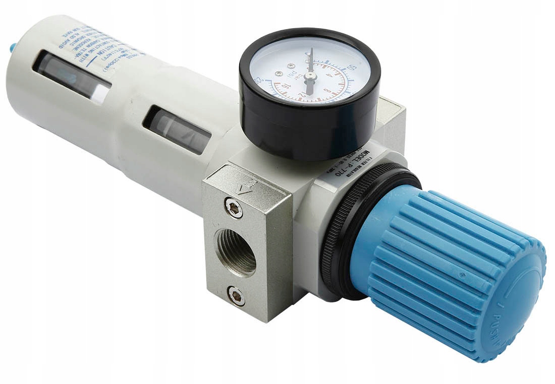 Регулятор з фільтром і водовідбірником використовується для регулювання робочого тиску в пневматичних системах і для компенсації можливих відхилень тиску. Цей продукт є ідеальним доповненням до будь-якої пневматичної установки. Його призначення – очищати повітря від твердих часток, залишків масла та інших забруднень конденсату.