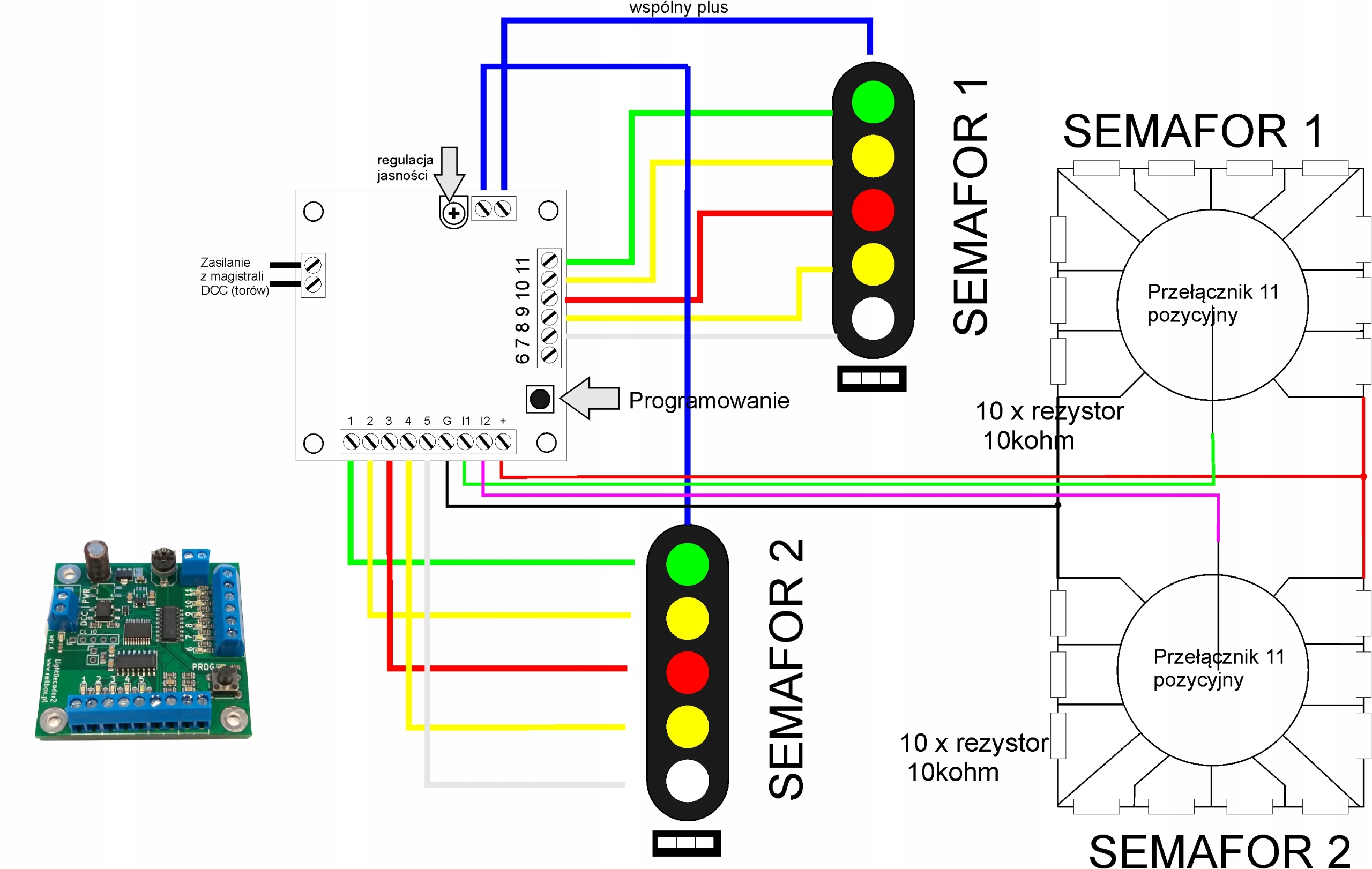 Декодер - контролер, призначений для незалежного керування двома 5-камерними світловими семафорами (різні сигнали в обох семафорах).