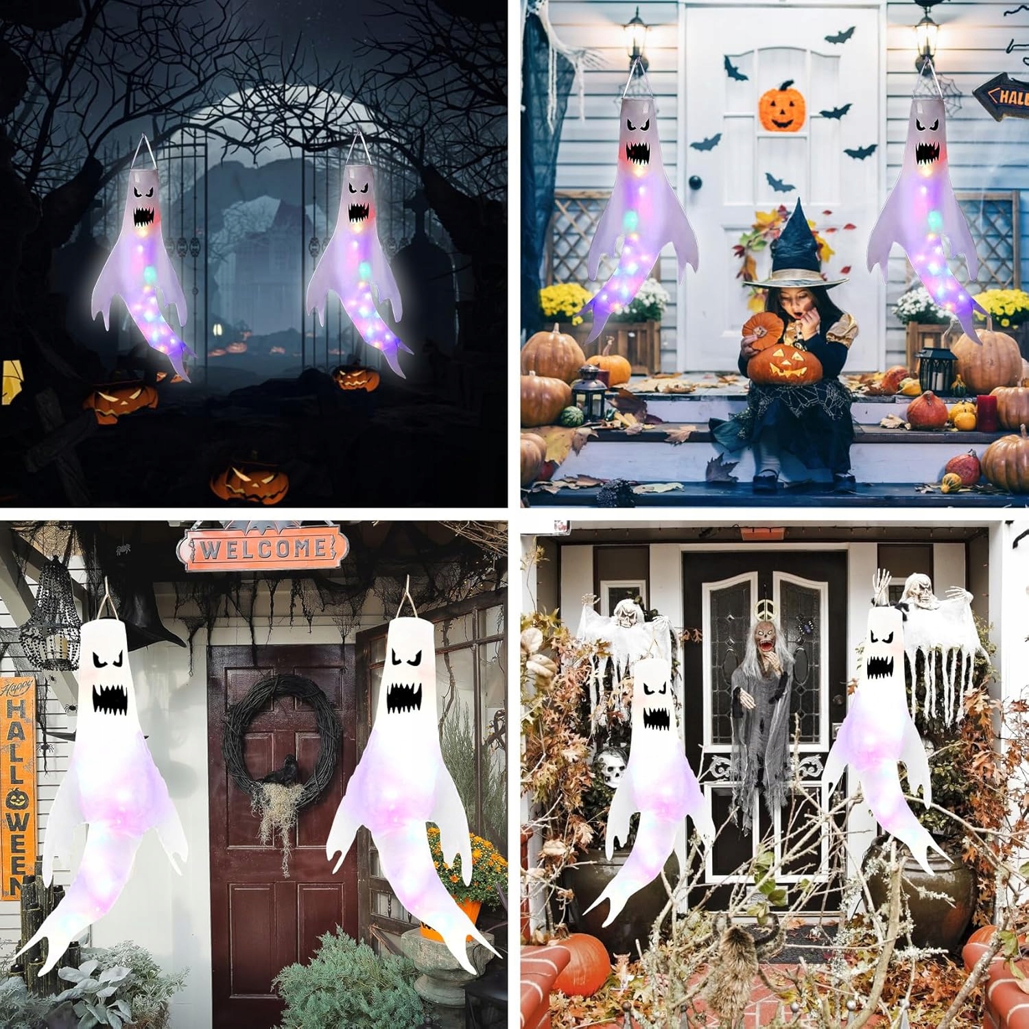 🎃 УЛЬТРА РЕАЛІСТИЧНІ 🎃 Ці привиди на Хелловін (2 штуки, 52x120 см), виготовлені за допомогою світлодіодної лампи та мають реалістичну 3D форму! Їх легко вішати, привиди обов’язкові для будь-якої вечірки! З ХЕЛОВІНОМ!