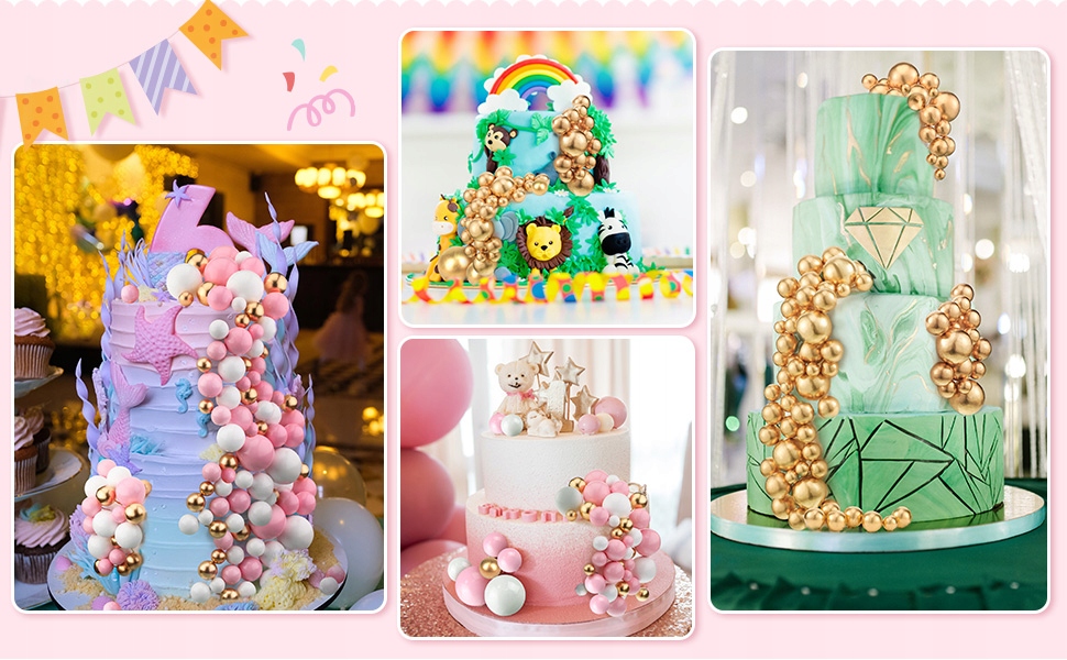 Широке застосування:Вставні кульки для торта можна використовувати для тортів на день народження, кексів, закусок та інших десертів, щоб вони виглядали смачніше; Ці форми для тортів є ідеальними прикрасами для святкування днів народження, свята дитини, заручин, весіль, ювілеїв, Дня святого Валентина, Різдва тощо