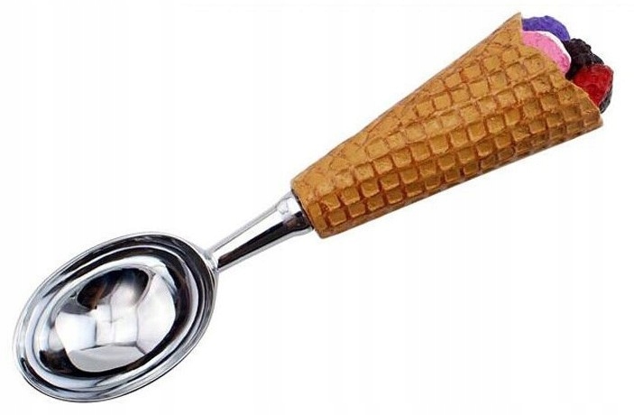 Красива форма та висока якість виготовлення. Крім того, увагу покупців привертає реалістичний вигляд морозива. Ложка термостійка, нетоксична та екологічно чиста. Призначений для кафе-морозива, кондитерських і закладів громадського харчування. Дозволяє порціонувати морозиво з черпаків і традиційне.