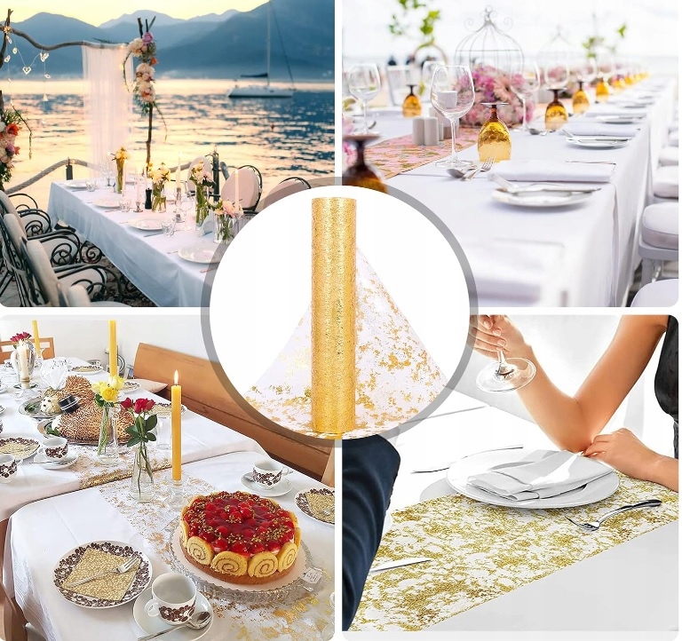 Декоративна сітка металік GOLD TREAD для столу Хрещення Свята 275х28