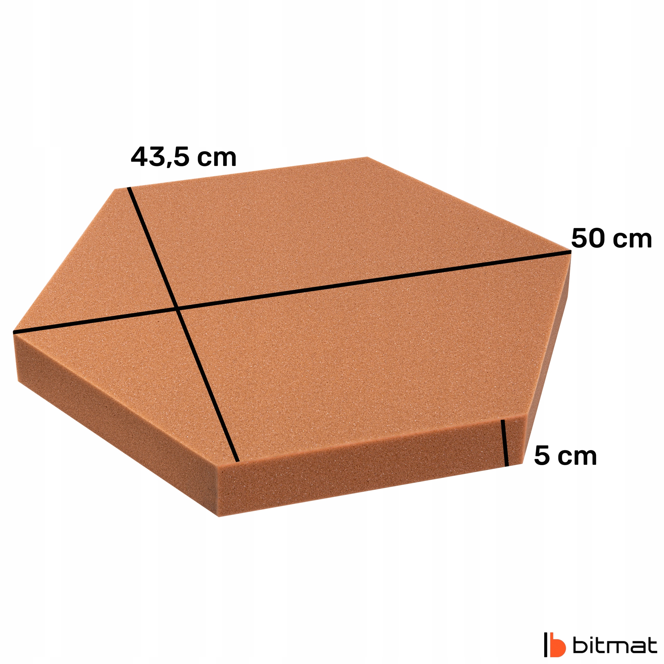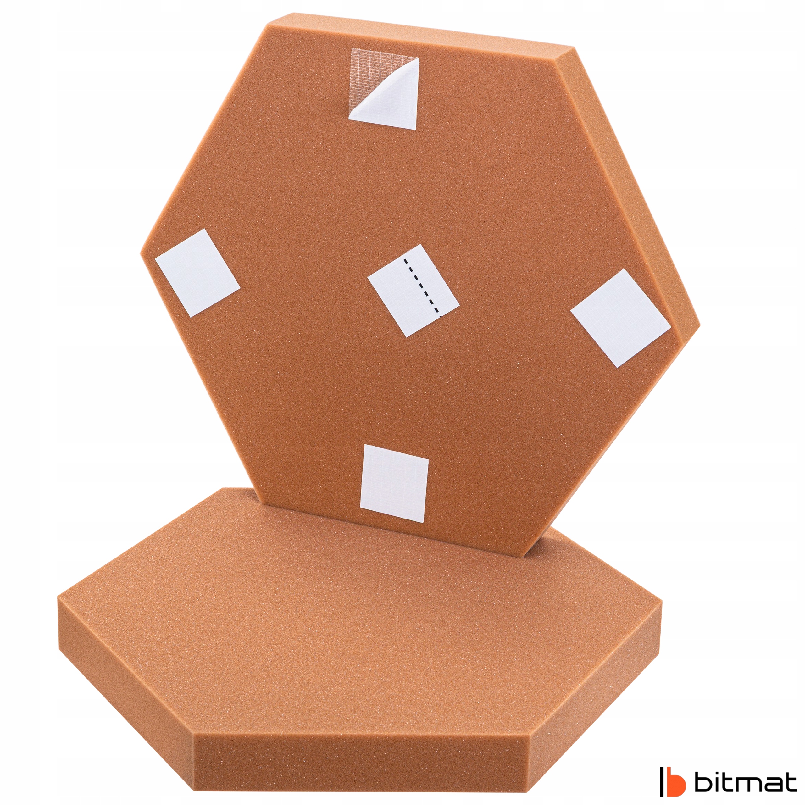 Панель Hexagon Bitmat 5 см - це ідеальне поєднання теплої естетики з професійною акустикою. Його модульна шестикутна форма (50 см х 43,5 см) є позачасовим декоративним елементом, а матеріал - спеціалізований пінополіуретан Bitmat AF-25 - гарантує ефектність. Завдяки своїй структурі з відкритими комірками та щільності 25 кг/м³ ця панель активно поглинає небажані звукові хвилі, що радикально покращує чіткість мови та музики, усуваючи втомливу реверберацію.