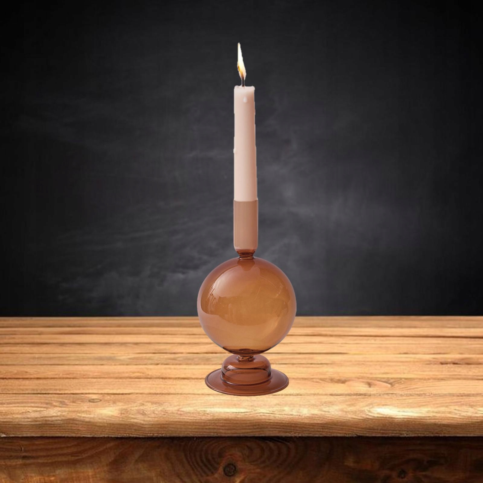 Коричневе скло та красиве світло свічки ідеально працюють як центральні елементи обіднього столу, створюючи атмосферу.