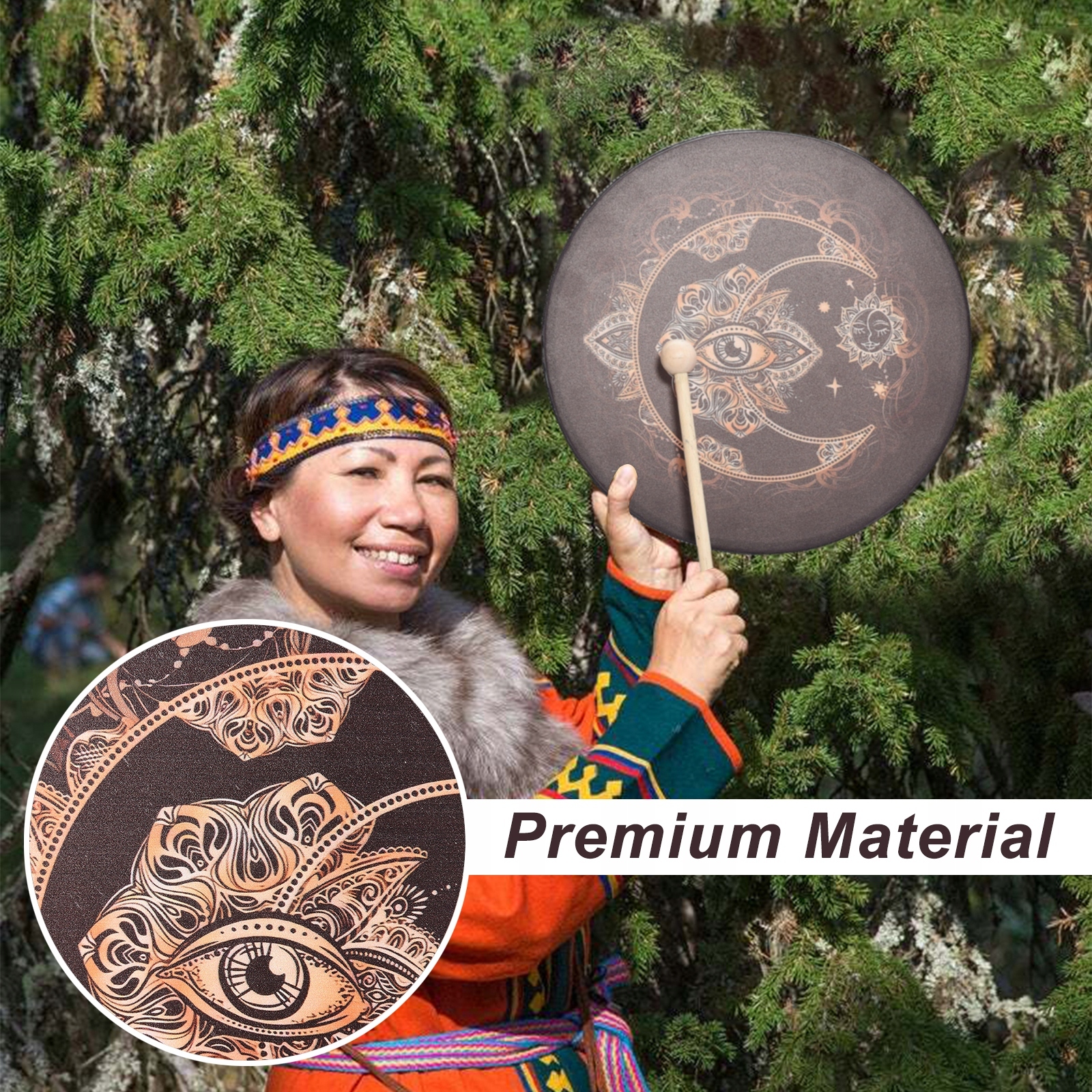 ✅2. Унікальний дизайн: орнамент шаманського барабана, круглий вінтажний колір, звучання музичного орнаменту, душевний подарунок для любителів музики.