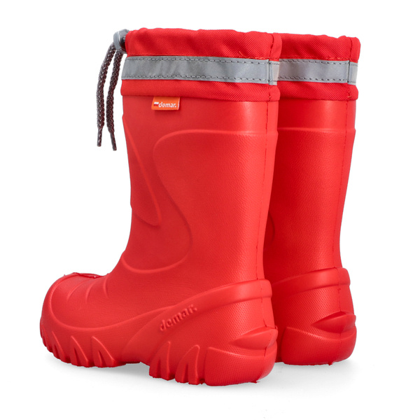 Надзвичайно легкі дитячі сапоги, утеплені натуральною шерстю, виготовлені з матеріалу EVA, з практичною знімною вставкою, яку можна прати в стандартних миючих засобах при температурі до 40°C. Ідеально підходить як по дорозі в школу, так і для гри у дворі. Вони захищають від вологи та ізолюють від холоду. Шнурок запобігає потраплянню снігу всередину.