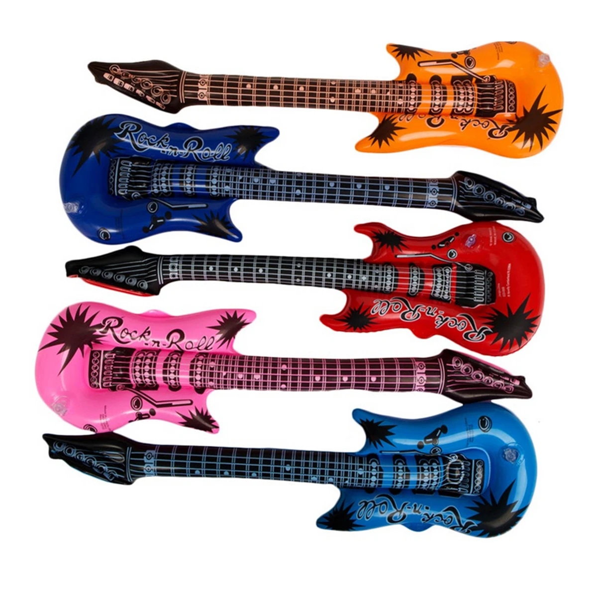 Цей виріб виготовлено з ПВХ преміум-класу з гарним кольором і особливим дизайном гітари. Можна використовувати багаторазово з комфортним накачуванням і здуванням. Ідеальна прикраса повітряними кулями з фольги на дні народження, заручини, весілля, танцювальні вечірки та інші особливі події.