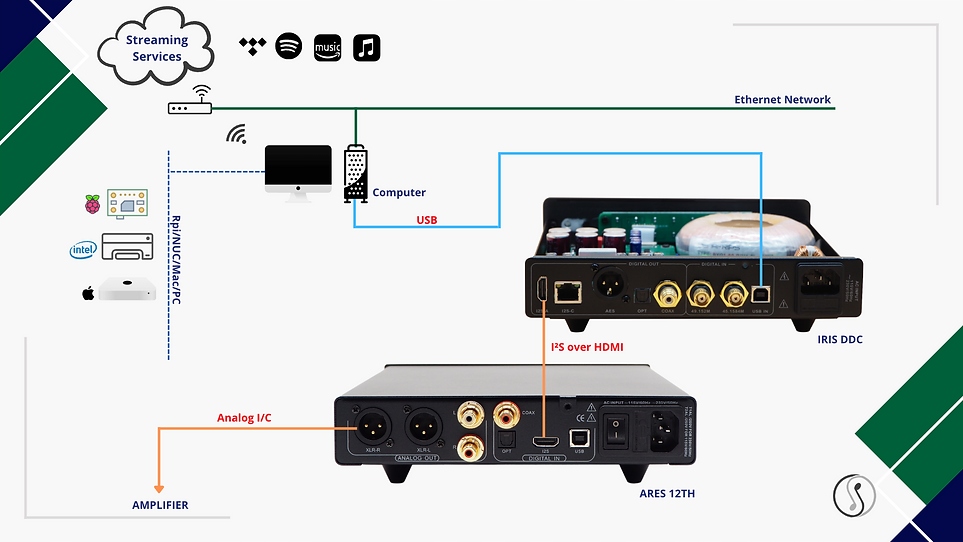 Ares 12th відрізняється від свого попередника Enyo/Ares II доданим входом I2S (HDMI). Ares 12 th to DAC — це 24-біт/1536 кГц, рідний DSD1024, дискретний R-2R сходовий ЦАП. Звукова характеристика пристрою наповнена емоціями і музикальністю, і в той же час природна і приємна після тривалого прослуховування. Завдяки використаній драбині R-2R пристрій є прикладом відмінного співвідношення ціни та якості. Кожен канал декодується чотирма сходами R-2R. Ця конструкція має дуже малу лінійну похибку, високу швидкість декодування, низький цифровий шум і забезпечує низькі спотворення аудіосигналу та низький фоновий шум.
