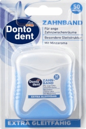 Донтодент Екстра -тапочка ідеально підходить для тісних проміжків. Він вражає унікальною розсувною структурою та свіжим ароматом м'яти. Стрічка широка, плоска, воскова і особливо стійка. Він не вислизає і ковзає в прогалини без зусиль, особливо з сильно пов'язаними зубами.
