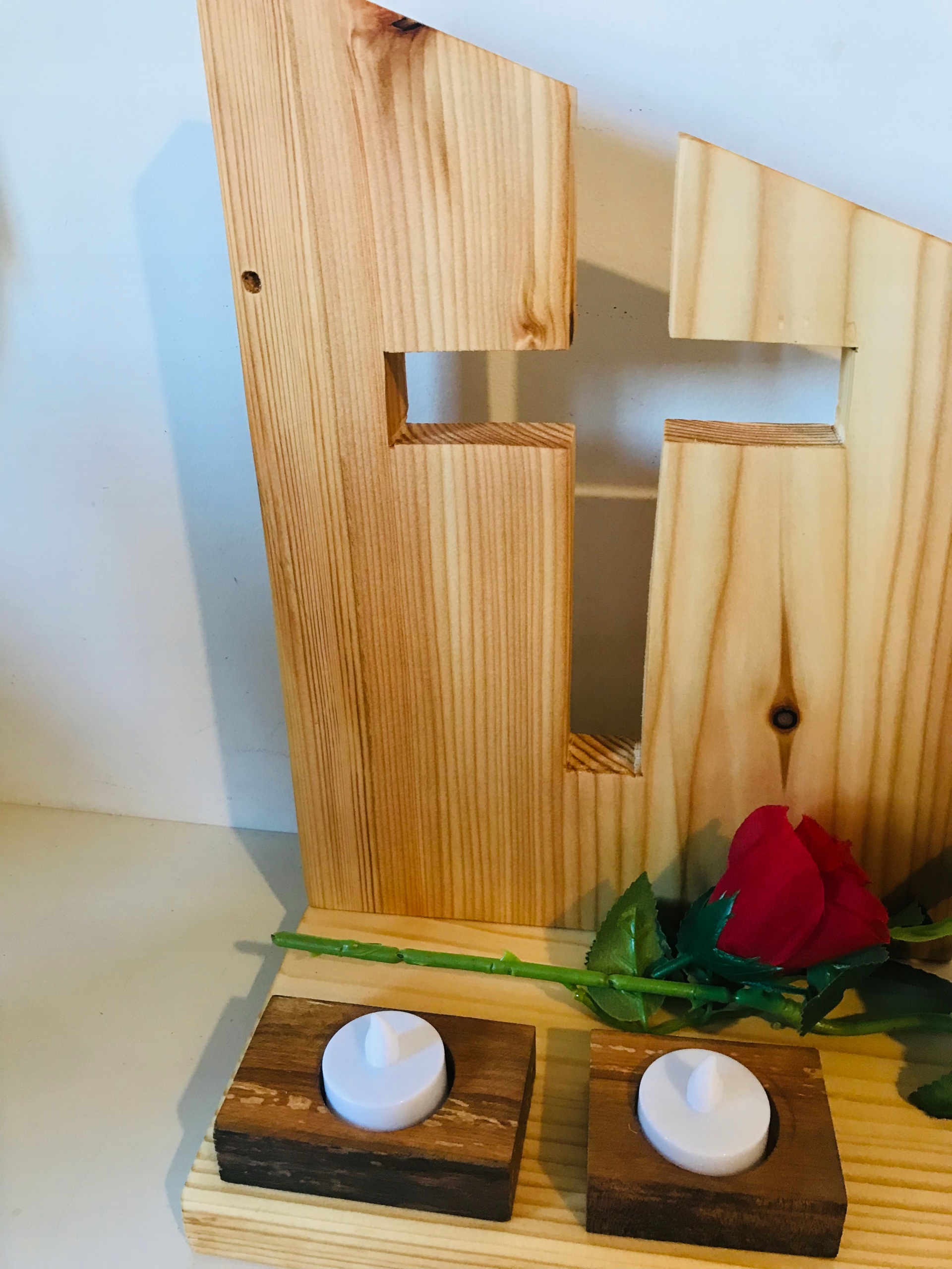 Красиві дерев'яні композиції з дерева з трояндою і вогнями.