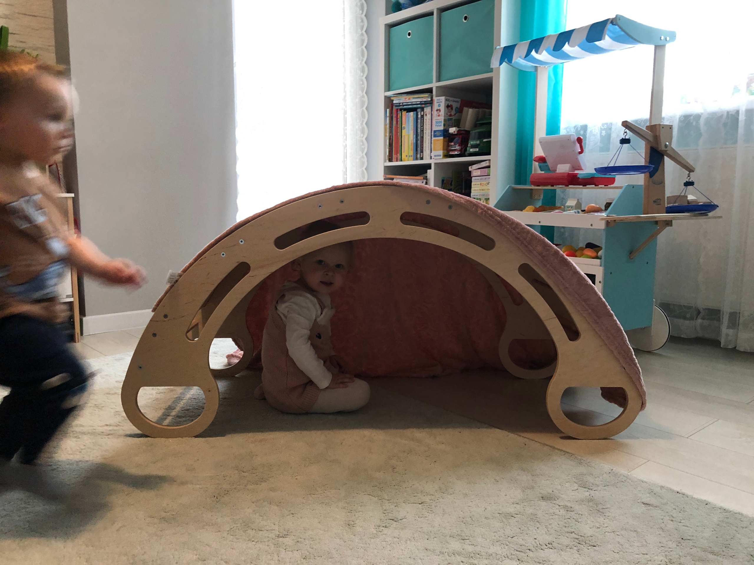 Ви можете гойдатися, лазити, лазити, ходити вгорі та грати внизу. Качалка може бути колискою, навчальним каркасом або основою столу.