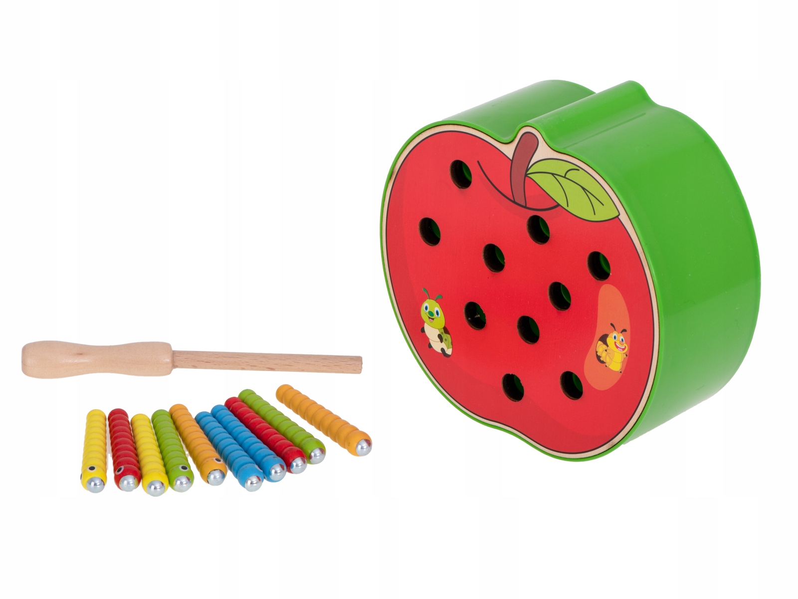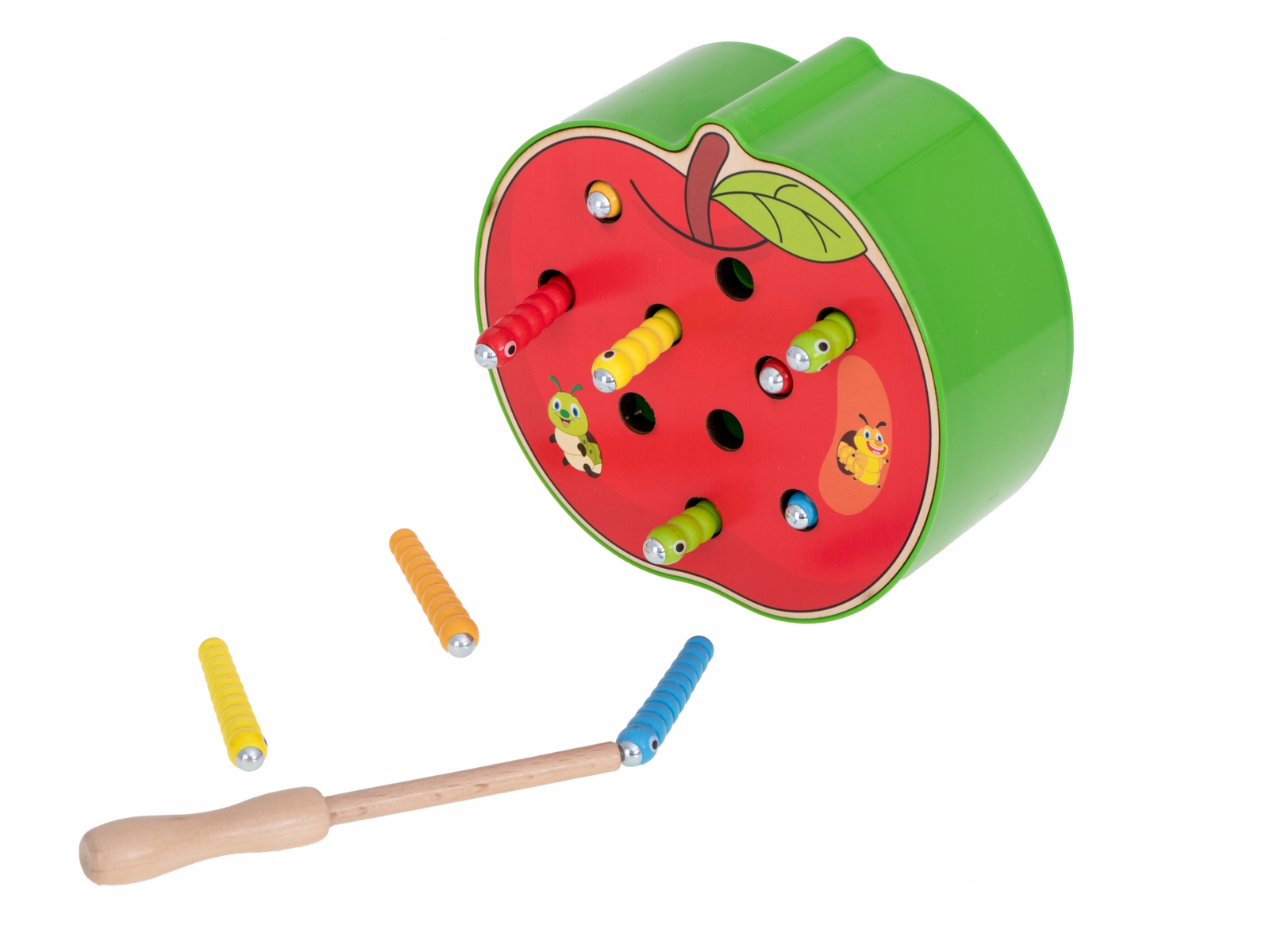 - ловити хробака! - Ця унікальна дерев’яна гра - чудова ідея взяти малюка. Весело передбачає стискання дерев’яною паличкою, закінчену магнітом черв’яків, прихованими в отворах у фрукті, а потім знову надягайте їх. Це велика проблема для малюка, який вимагає фокусування та ефективності вручну. 4 Класична краса деревини та його сили змушують її завжди насолоджуватися великим визнанням. Ця сировина виглядає добре як у природному, так і в пофарбованому. Гра безпечна для кожної дитини. Природна сировина викликає, що навіть якщо дитина візьме іграшку в рот, він не матиме контакту зі штучними пластмасами. 4 Це прекрасний спосіб практикувати координацію очей, що так важливо в майбутньому. 4