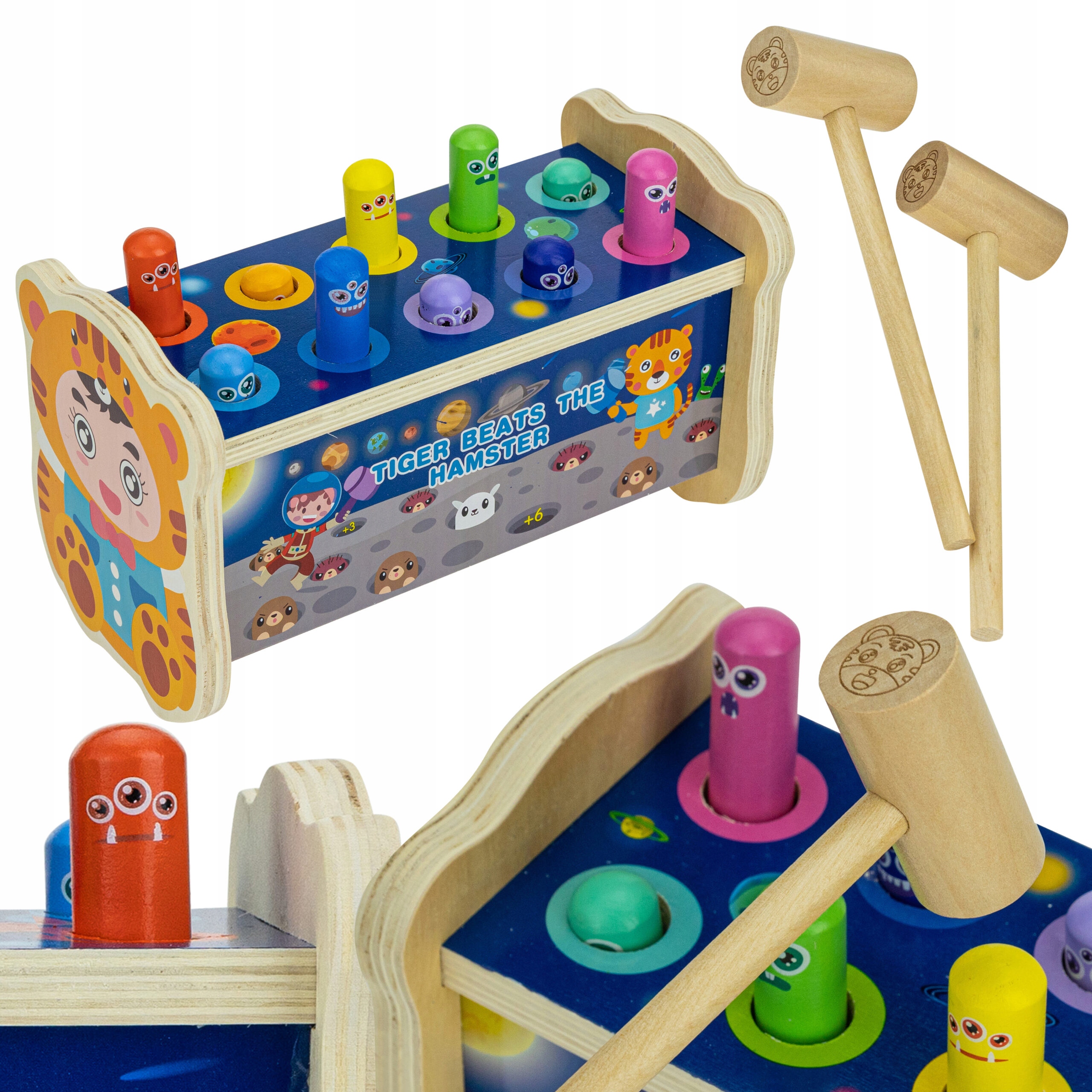 ⇒ ІНСТРУКЦІЇ: Целе удари молотком по хробакамтак, щоб вони ховалися в норах. Завдяки двом молоткам двоє дітей можуть грати одночасно.
