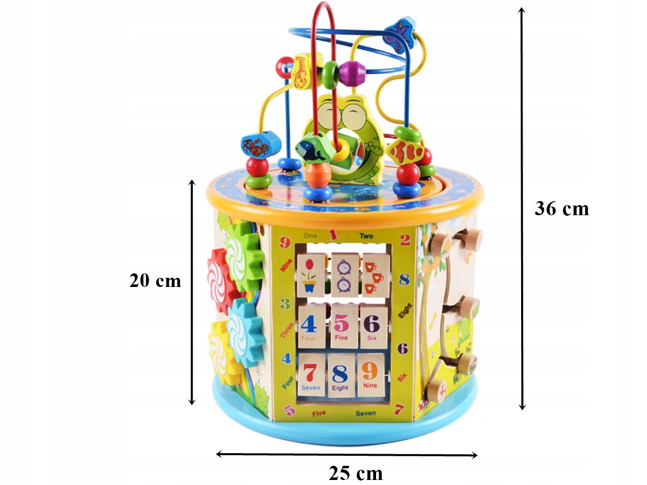 Дерев'яна навчальна коробка 8 в 1 — це фантастичний навчальний куб, кожна стінка якого виконує різну функцію.