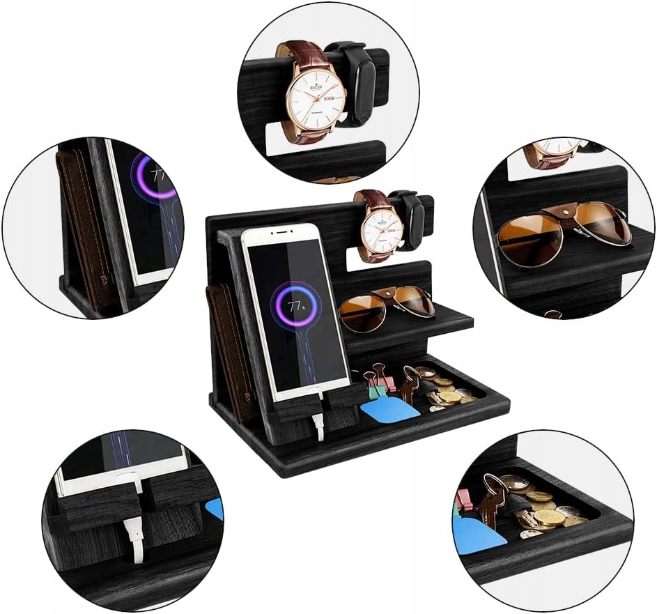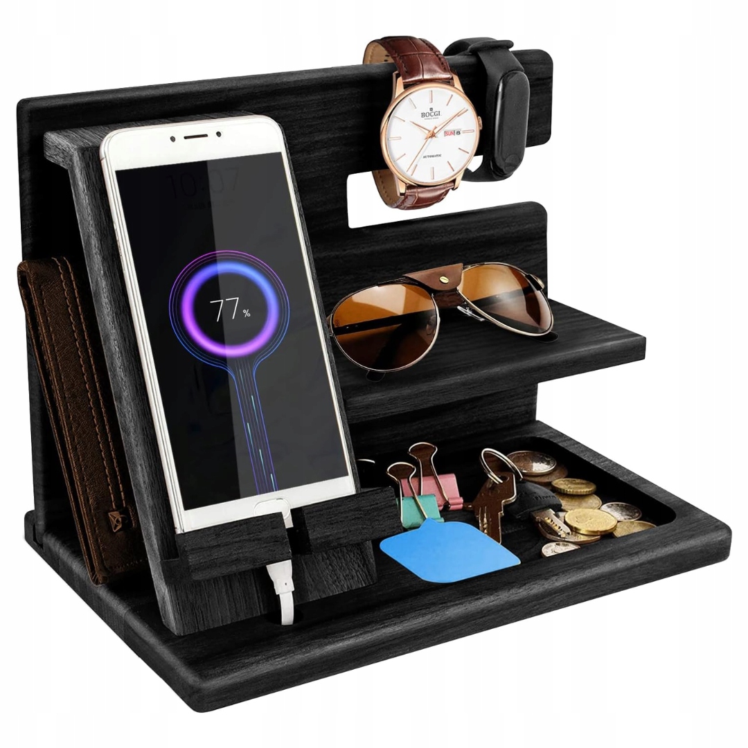 Дерев'яна підставка для аксесуарів - Док-станція для мобільного телефону, подарунок чоловікові на день народження, дерев'яна, для ліжка, тумбочки, органайзера, зарядної станції для годинників Подарунок чоловікові, батькові, найкращому другу на ювілей, день народження