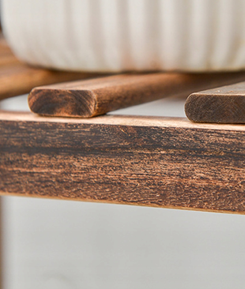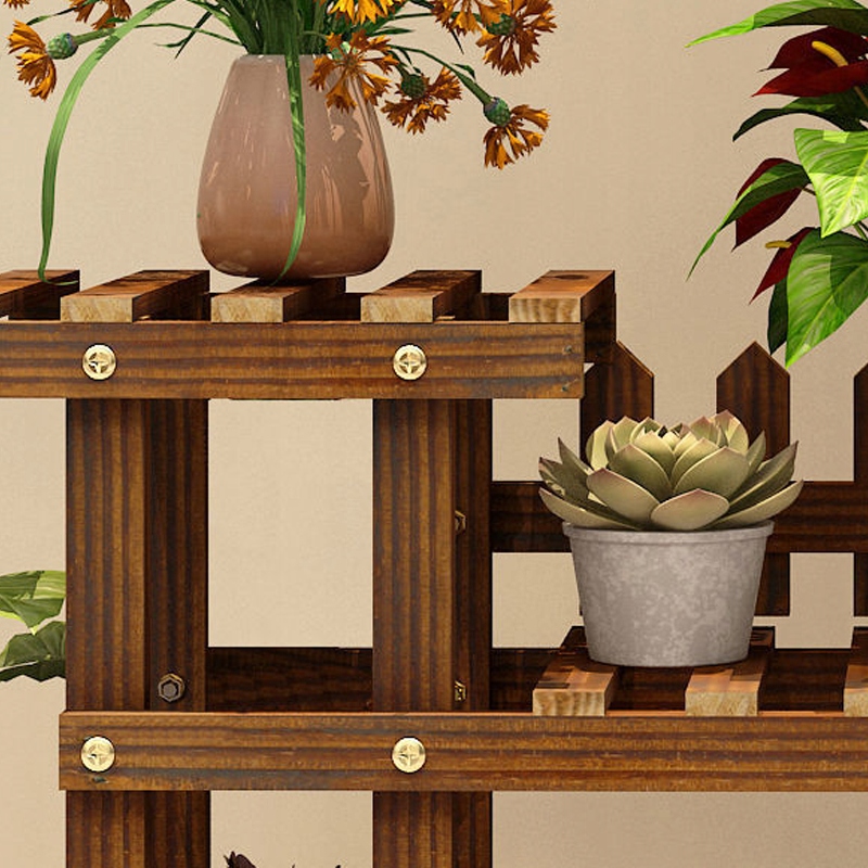 Виготовлена з масиву деревини підставка для квітів не тільки виглядає естетично, але й є довговічною та стійкою до погодних умов. Його структура складається з чотирьох рівнів, що дозволяє розташувати рослини на різній висоті, що в свою чергу створює привабливу та гармонійну композицію.