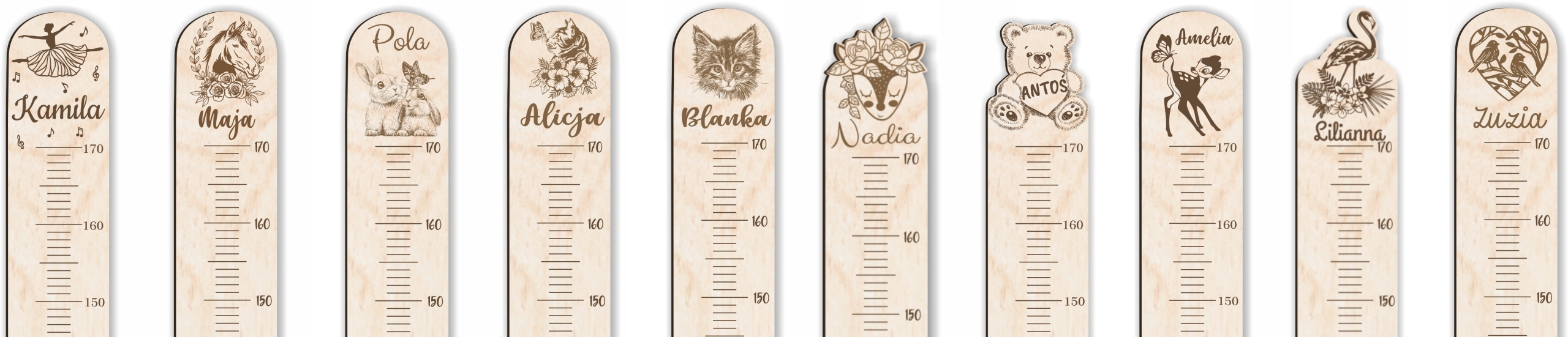 Дерев'яна мірка не тільки дозволяє стежити за ростом ваших дітей, але й є гарною та атмосферною прикрасою дитячої кімнати. Великий вибір візерунків допоможе задовольнити вибагливі дитячі смаки.