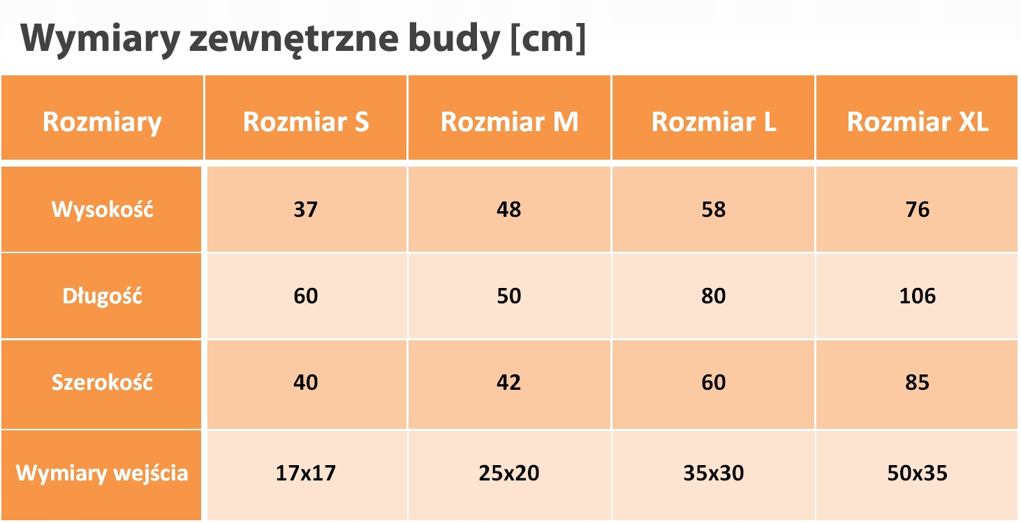 Ця будка складається з простих, готових елементів для самостійної збірки, яка займає всього 5-10 хвилин. Розплідник в сирому стані, готовий до фарбування. Монтажний комплект містить кілька гвинтів, інструкцію та 0,5 л просочення (кольор вказуйте у формі поставки).