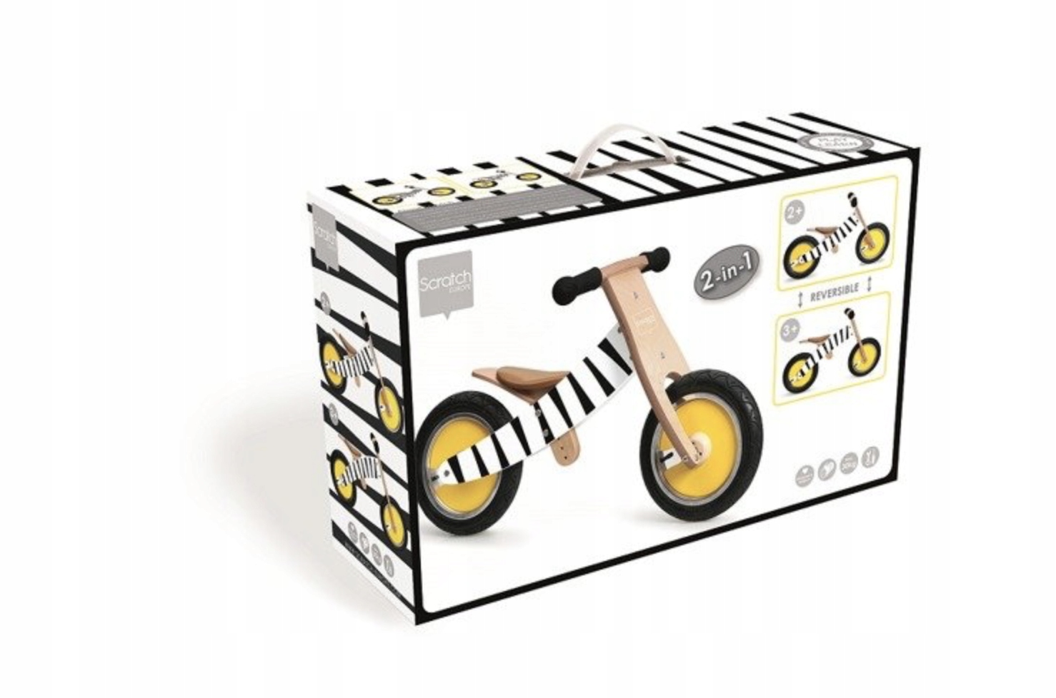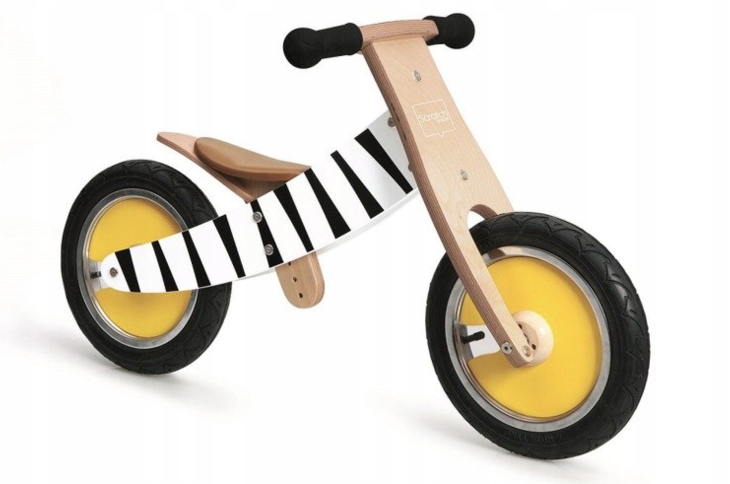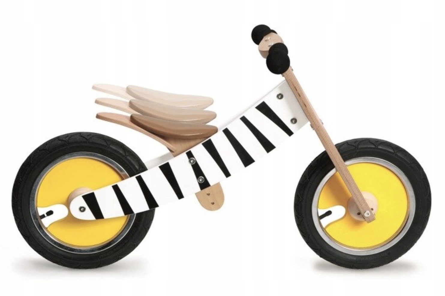 Навчившись їздити на велосипеді, дитина розвиває свої рухові навички. Він легко і в майбутньому навчиться їздити на традиційному велосипеді з педалями в майбутньому. Велосипед виготовлений з міцної та довговічної закладеної клеєної деревини. Крім того, велосипед був оснащений накачаними шинами для більшого комфорту та захисту стиків маленької дитини. Обкладинки кола виготовлені з дерева. Велосипед має м’яке, зручне сидіння з регулюванням висоти. Велосипедна рама має отвір для легкого носіння велосипеда.