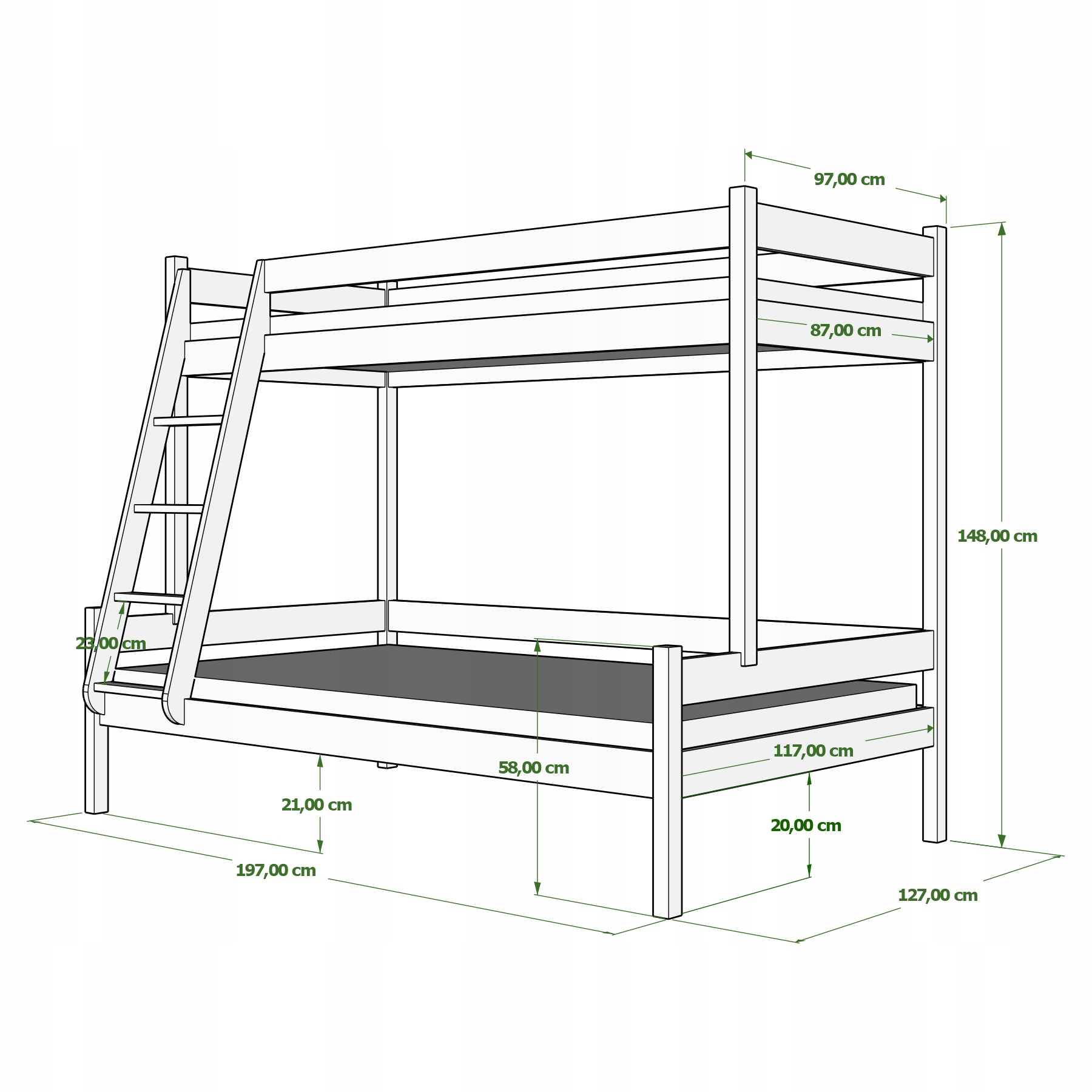 Модель FAMILIJNE – це двоярусне ліжко, виготовлене повністю з високоякісної сосни. На більш широкому ліжку в нижній частині з легкістю розмістяться двоє молодших братів і сестер, а на верхньому спати дитина старшого віку. Вдень діти матимуть більше місця для ігор на нижньому ліжку. Конструкція цієї моделі дозволить оптимально використовувати простір нашої дитячої кімнати, а ретельно продумані всі елементи забезпечать комфорт і безпеку використання.