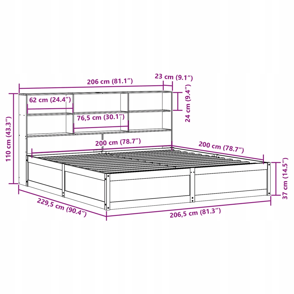 Дерев’яне ліжко з полицями, 229.5x206.5 см, коричневий колір