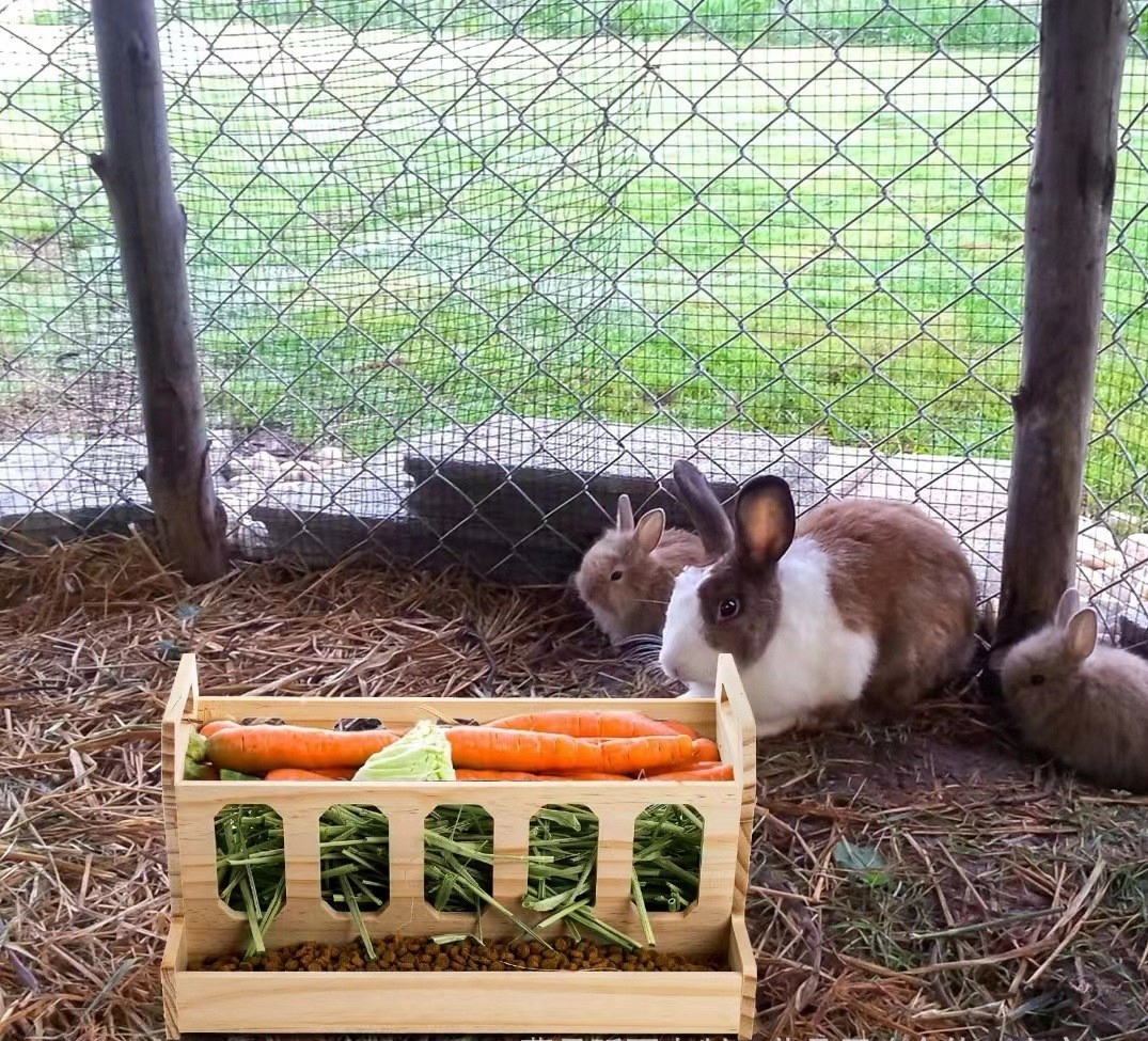 Практична та естетична годівниця для сіна, овочів та корму для кроликів та інших гризунів. Виготовлена з натуральної деревини, безпечна для тварин і довговічна для щоденного використання.