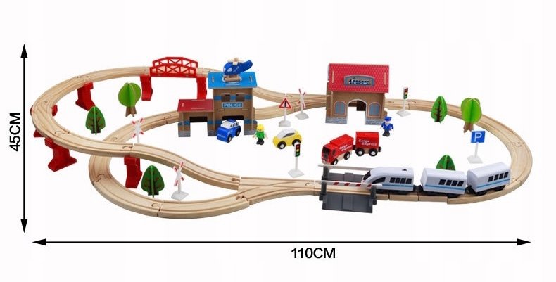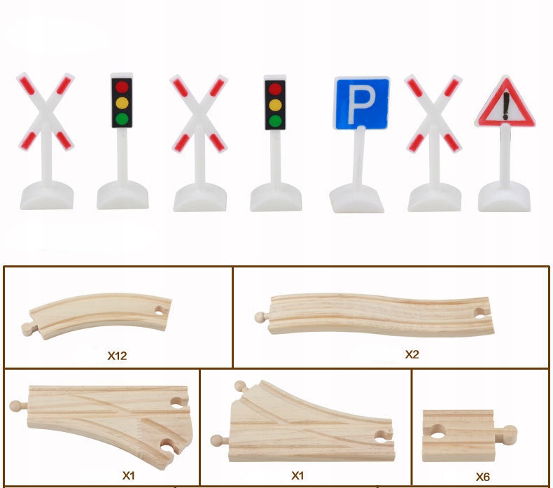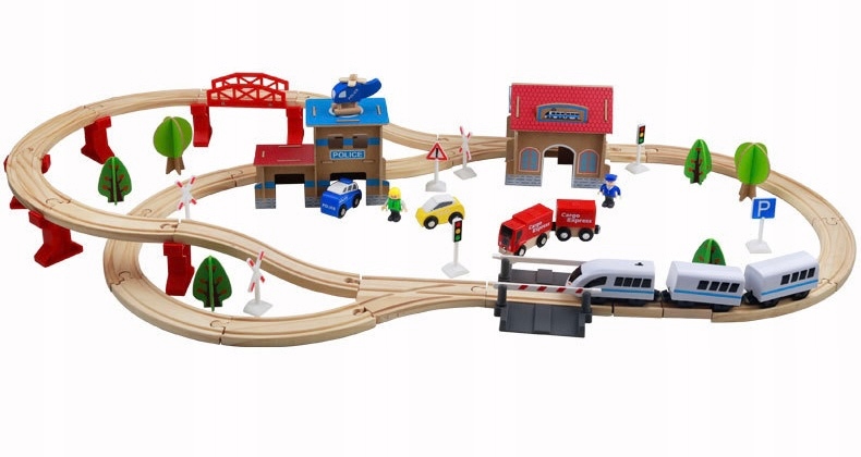 Дерев'яні доріжки характеризуються багатьма можливими комбінаціями. Завдяки використанню багатьох елементів ваша дитина створить власні, унікальні маршрути! Будівлі, що входять до набору, створять реалістичне зображення міста! Весь набір дозволить вам грати за справжнього машиніста! Завдяки дорожнім знакам, що входять до комплекту, ваша дитина навчатиметься через гру - вона дізнається значення окремих знаків і використовуватиме отримані знання в повсякденному житті! Набір естетично упакований коробка, що робить її ідеальною в якості подарунка!