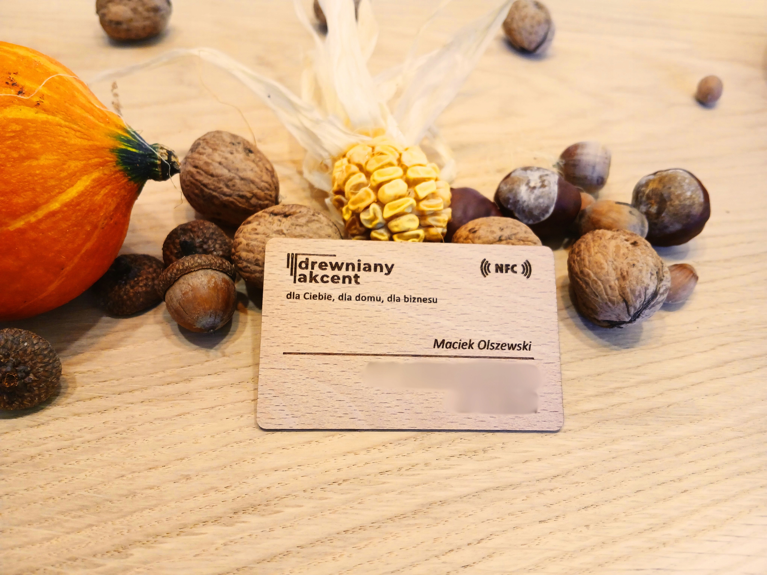 Дерев'яні NFC візитки, гравіровані, програмовані, RFID, бук