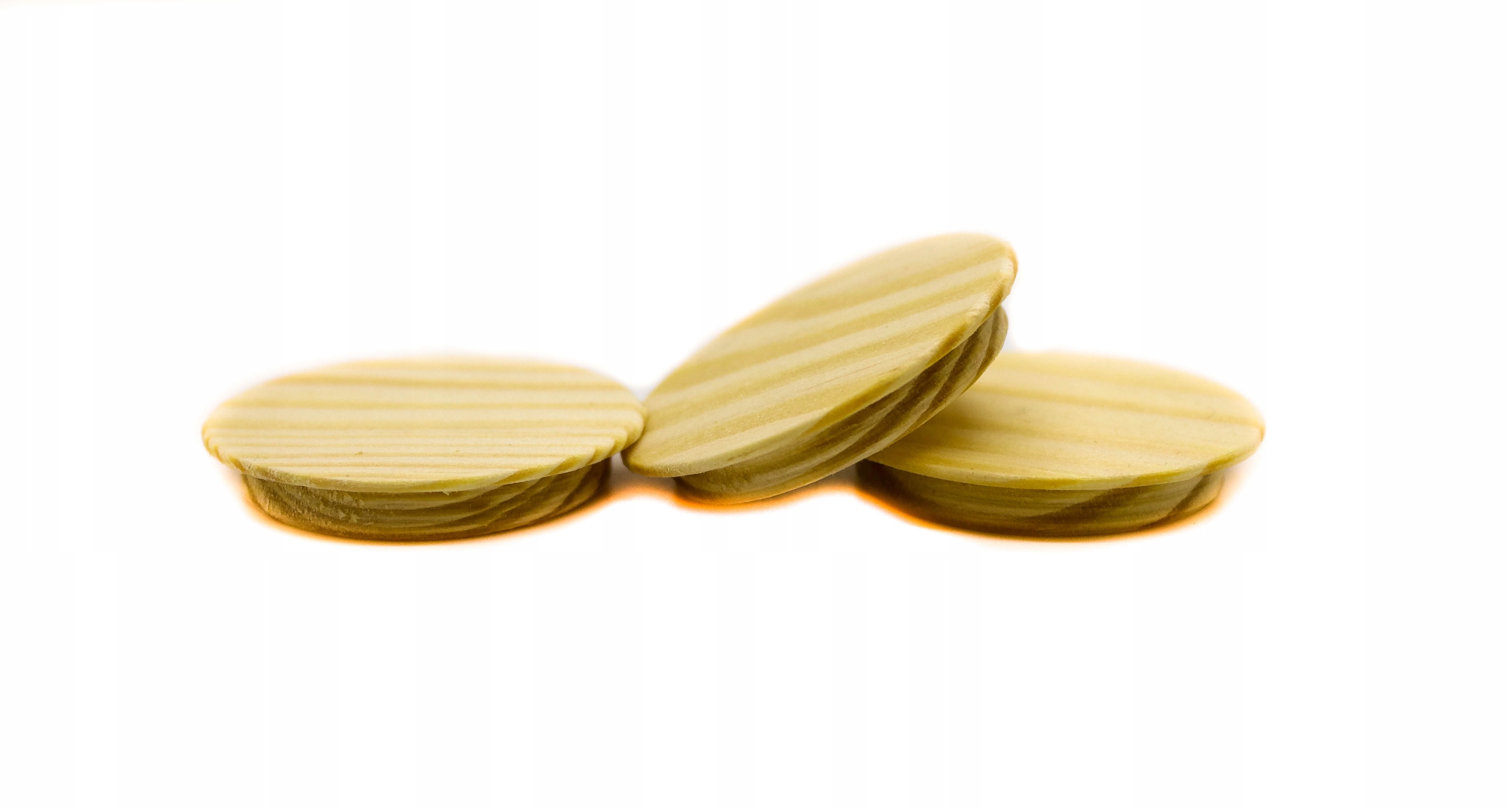 Найбільшою перевагою плоских заглушок є те, що зерна деревини ЛЕЖАТЬ, тобто розташовані вздовж площини кришки. Завдяки цьому їх гладка та полірована поверхня вбирає лак або плями так само, як і поверхня матеріалу з ковпачками.