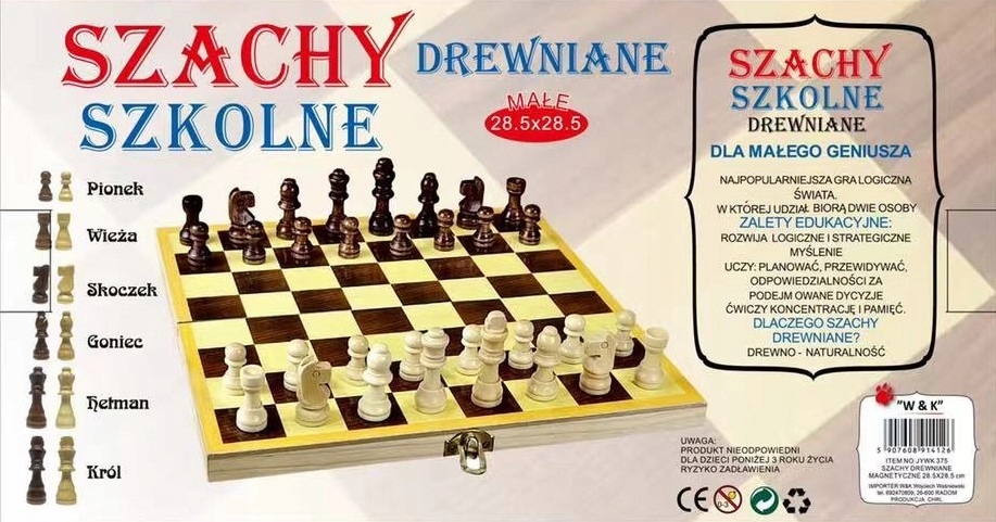 Дерев'яні шкільні шахи 28,5 см х 28,5 см