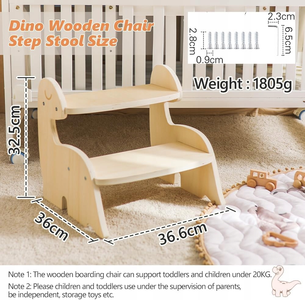 - МЕБЛІ ДЛЯ ДИТЯЧОЇ ТА МАЛЕНЬКОЇ ДИТЯЧОЇ КІМНАТИ - У комплект входить 1 навчальна вежа з мотивом динозавра з натурального дерева з 2 сходинками. Наша унікальна навчальна вежа Монтессорі у формі динозавра з натурального дерева підходить для немовлят і малюків на кухні, в туалеті, спальні, на стіні, шафі чи полиці. Дуже зручний і простий в установці. Збір під наглядом батьків. Примітка: може підтримувати маленьких дітей вагою менше 20 кг. Притуліть його до стіни чи шафи.