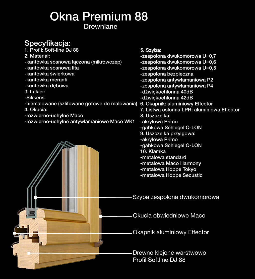 Дерев’яні вікна для дерев’яного дерев’яного журналу - Premium 88 - Wacławik