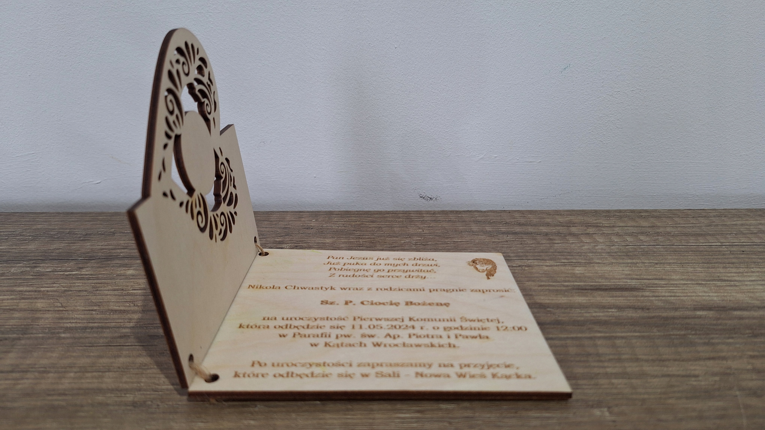 Красиві дерев'яні запрошення на Перше Святе Причастя