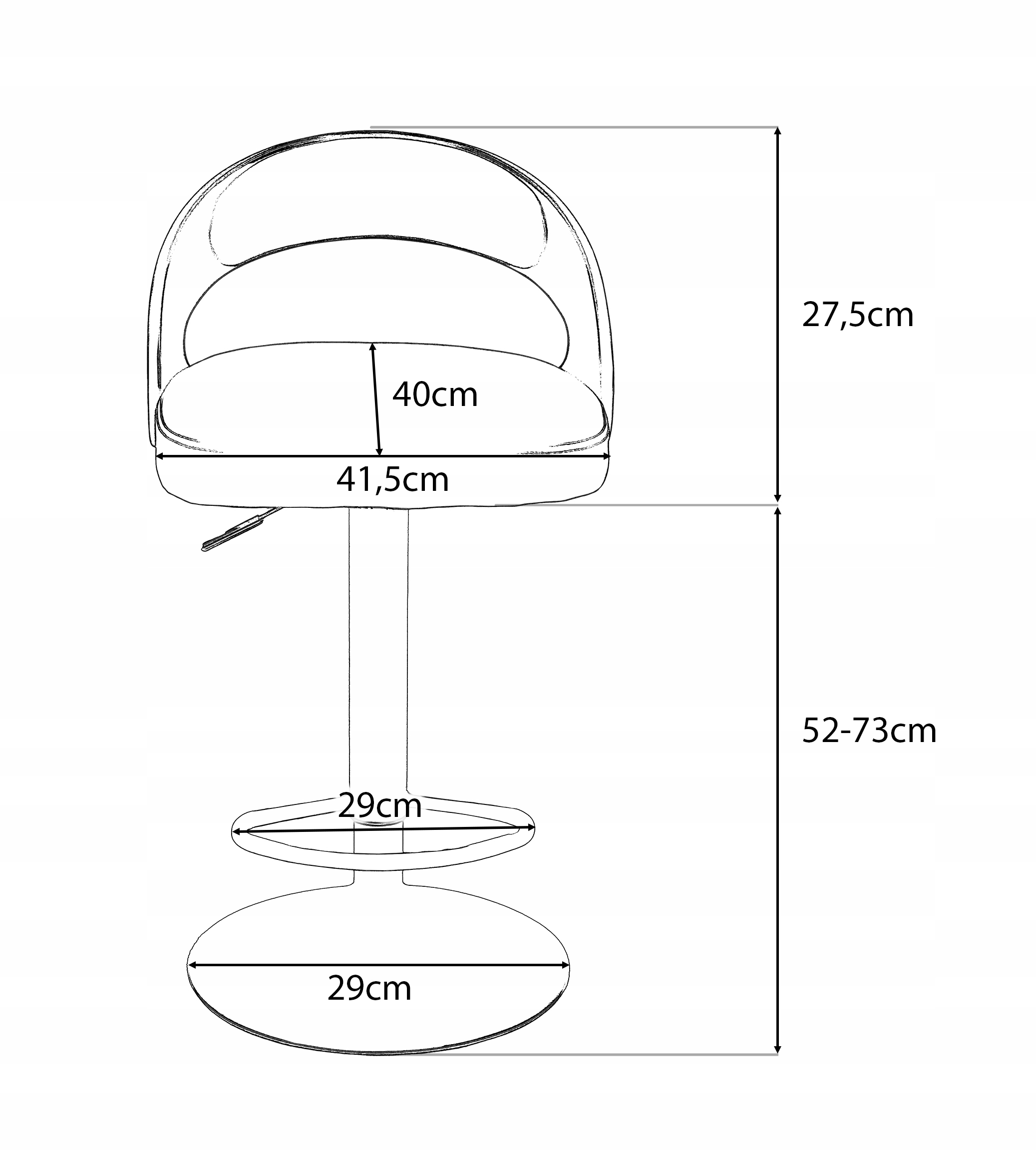 - Ширина сидіння: 41,5 см сидіння: б> 40 с. Висота сидіння: Регульований від 52 см до 73 см