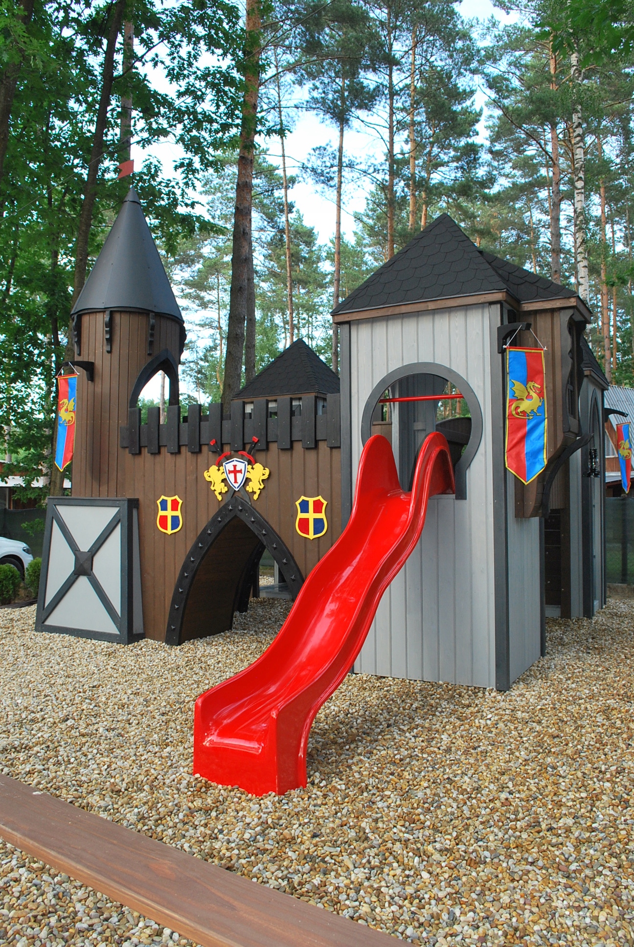 Дитячий майданчик у формі лицарського замку - справжня насолода для кожної дитини, і ми говоримо не тільки про хлопчиків, цей замок може зачарувати і дівчаток. Це чарівне та унікальне місце, де можна повністю поринути в незабутні пригоди.