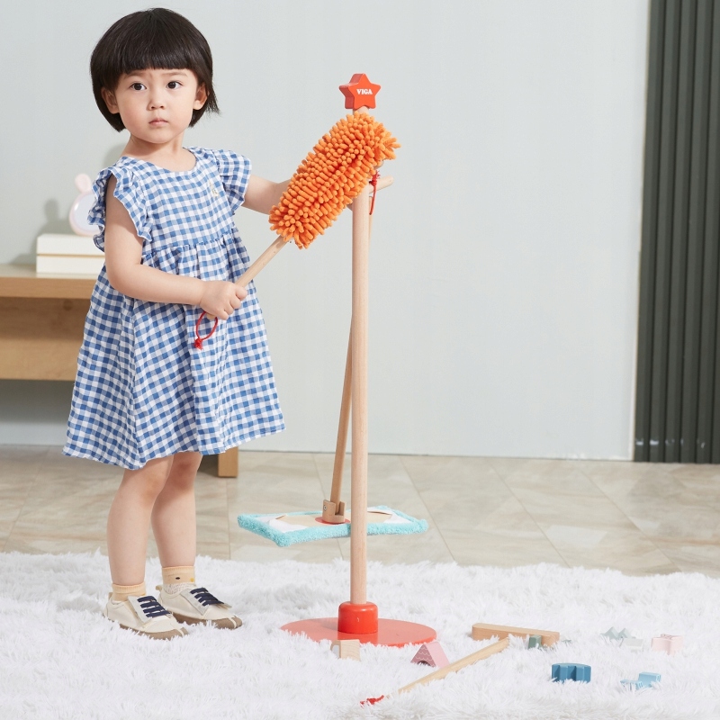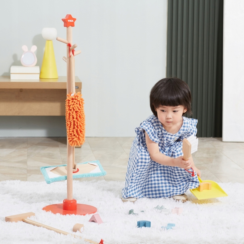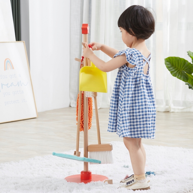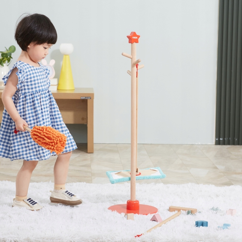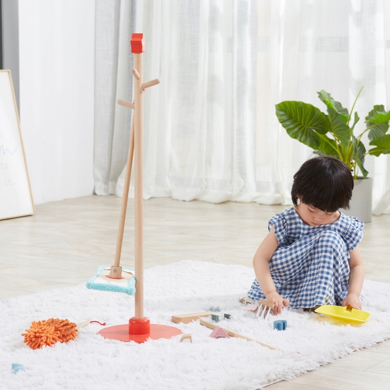 - Чищення зазвичай пов'язане з дітьми досить негативно, як поганий обов'язок або нудне та стомлююче заняття. Набір для чищення - це аксесуари, пристосовані до невеликих помічників, як розміру, так і важкості. Елементи можна легко зберігати за допомогою стійки з червоною основою, де їх можна повісити. Завдяки набору для чищення, дитина навчиться використовувати окремі предмети. Малюк навчиться піклуватися про замовлення та чистоту в його кімнаті.