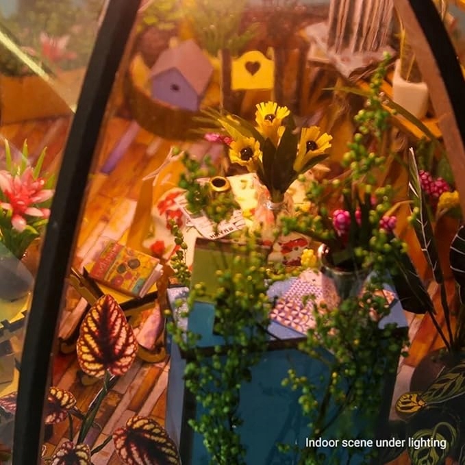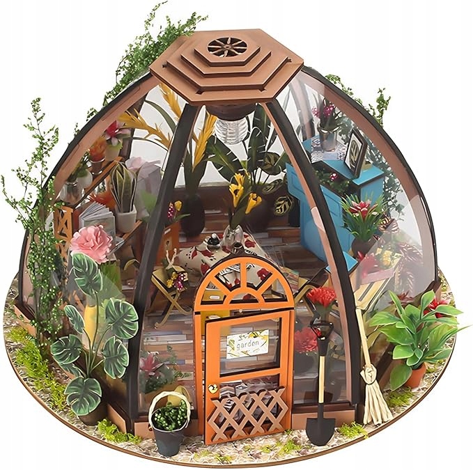 Цей унікальний купол оранжереї своїми руками — це зібрана вручну модель у масштабі 1:24, яка вражає деталями, кольорами та затишною атмосферою. Ідеально підходить як прикраса, подарунок, мистецьке хобі чи предмет колекціонування.