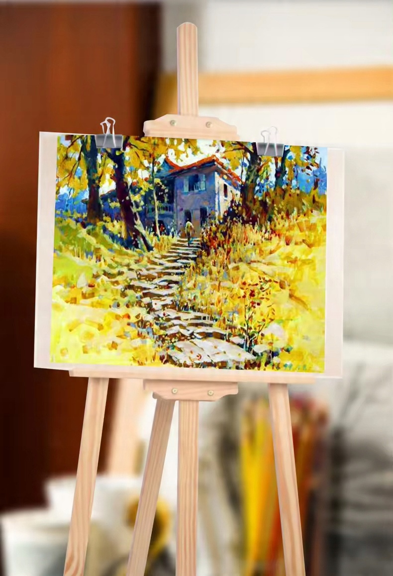 Деревина - міцна та стійка, що гарантує довговічність мольберта.