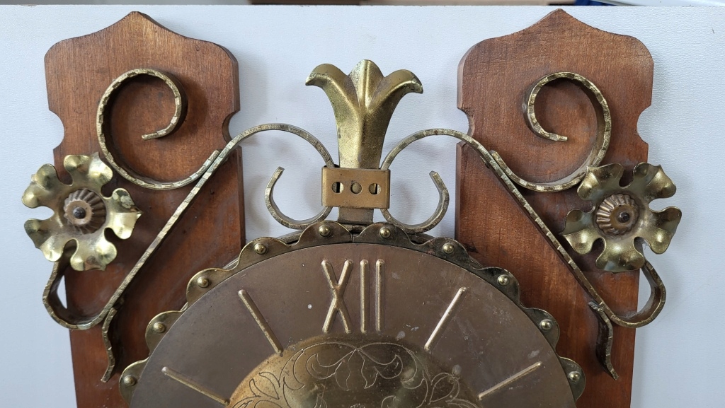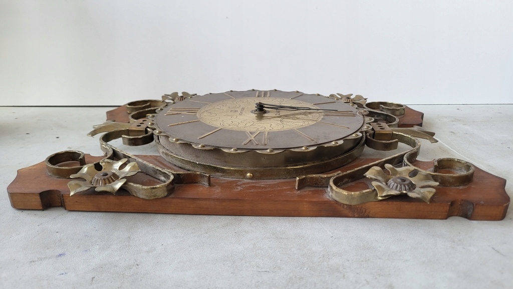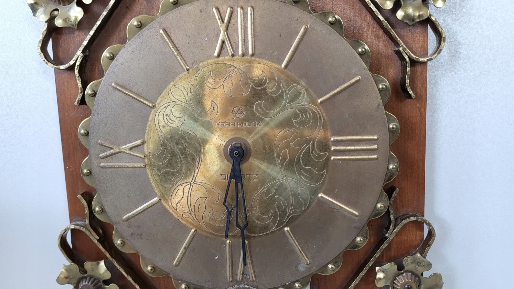 ДЕРЕВ'ЯНИЙ МЕТАЛЕВИЙ ПІДВІСНИЙ ГОДИННИК MERA POLTIK КВАРЦОВИЙ СТАРОВИЙ ДЕКОР КОНІН
