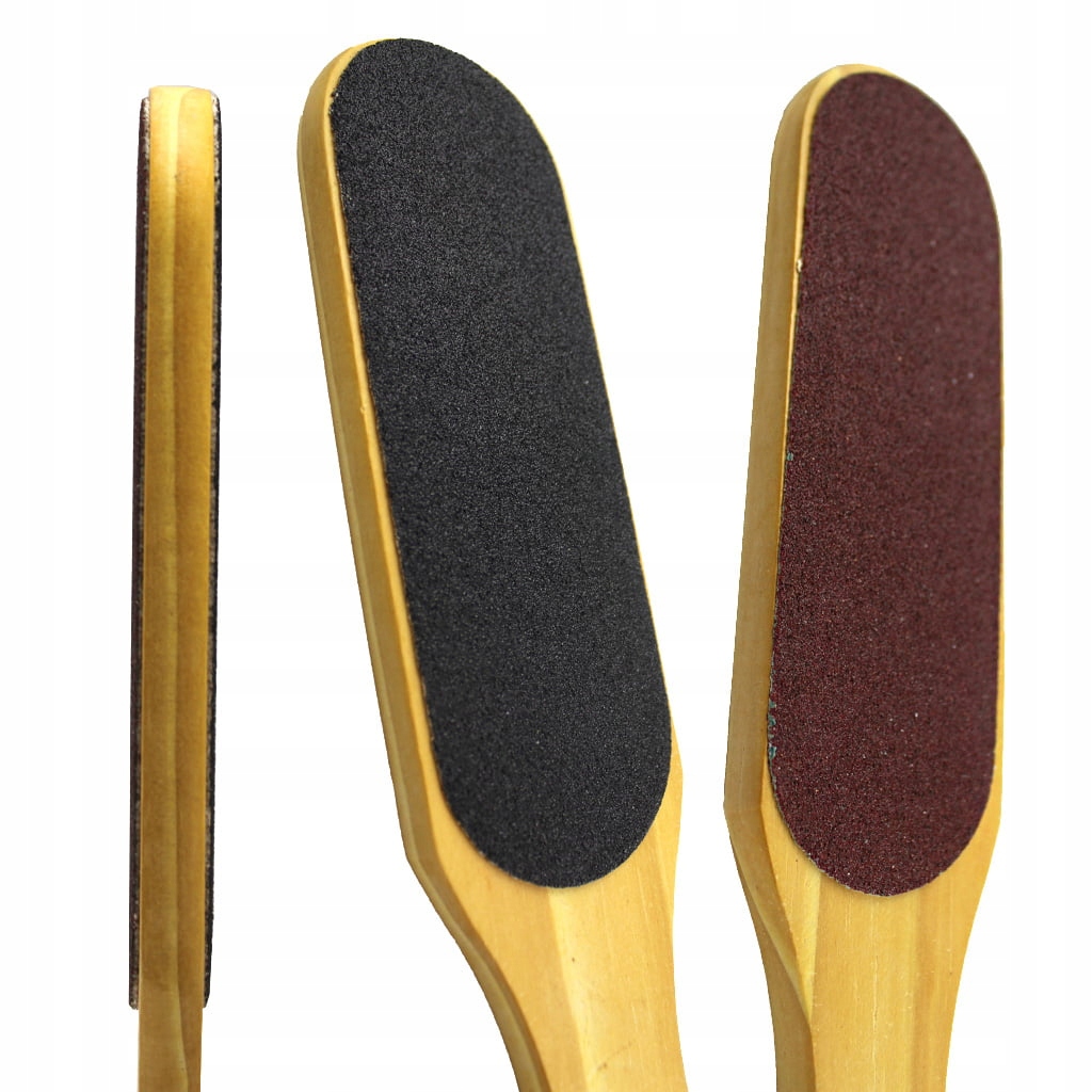 Двостороння терка з елегантне дерево - це ергономічно та зручно. Якісні абразивні деталі. Використовується для видалення ороговілого епідермісу з п'ят.