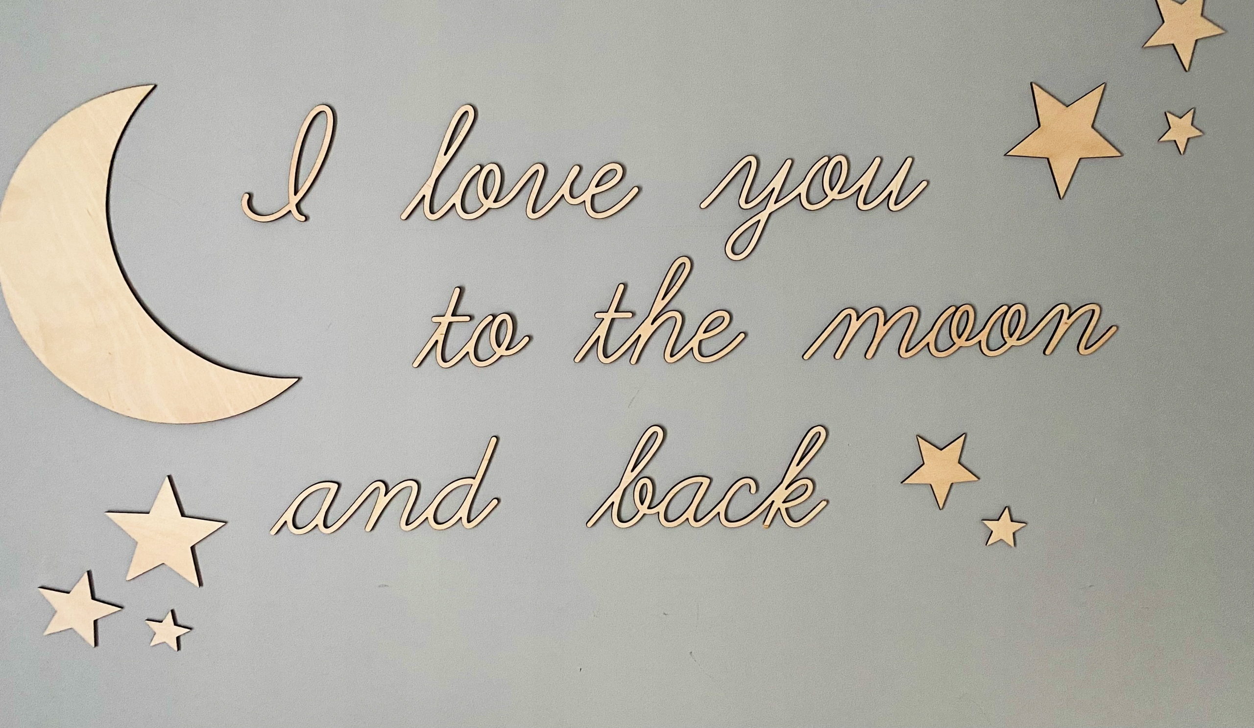 3D ДЕРЕВ'ЯНИЙ ДЕКОР "Я люблю тебе до місяця і назад" для наклеювання на стіну в дитячій кімнаті