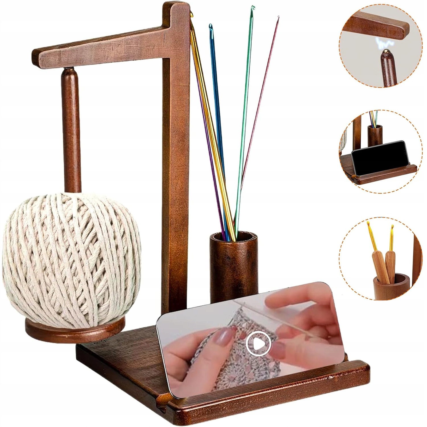 🧶🧵ТРИМАЧ ДЛЯ ПРЯЖІ МАГНІТНИЙ, МНОГОФУНКЦІОНАЛЬНИЙ ТРИМАЧ ДЛЯ ПРЯЖІ З ПІДСТАВКОЮ ДЛЯ ТЕЛЕФОНУ ТА МІСЦЕМ ДЛЯ В'ЯЗАННЯ ГАЧКОМ, ДЕРЕВ'ЯНИЙ ТРИМАЧ ДЛЯ ПРЯЖІ ДЛЯ В'ЯЗАННЯ ГАЧКОМ, ВЕЛИКИЙ ТРИМАЧ ДЛЯ В'ЯЗАННЯ СПИЦЯМИ ТА ГАЧКОМ, ПРЯЖА ТРИМАЧ🧶🧵