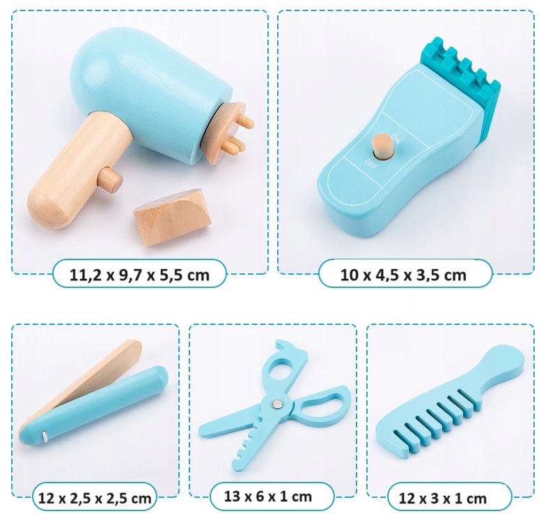 Дерев’яний перукарський набір , безумовно, сподобається кожному малюку, який хоче певною мірою наслідувати дорослих. Гра з набором допомагає навчитися піклуватися про гігієну та зовнішній вигляд вашої дитини. Завдяки широкому спектру доступних аксесуарів дитина може навчитися відповідним призначенням, маніпулювати ними та навчитися отримувати причинно -наслідкове та ефективне мислення. практичного життя. Весь набір упакований у прекрасного косметолога, завдяки якому всі елементи завжди матимуть своє місце!