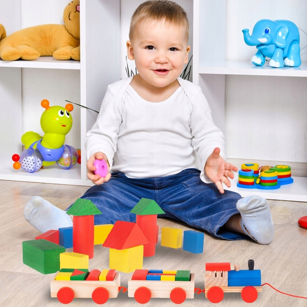 - Дитина може возити поїзд, наповнений кубиками, або самостійно будувати різноманітні конструкції.