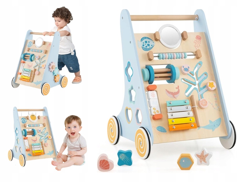 Наша іграшка для прогулянок повністю безпечна із заокругленими, незламними краями та має міцну трикутну конструкцію для надійної стабільності, поки діти пересуваються завдяки розважальним функціям, таким як ксилофон, сортувальник форм тощо більше.