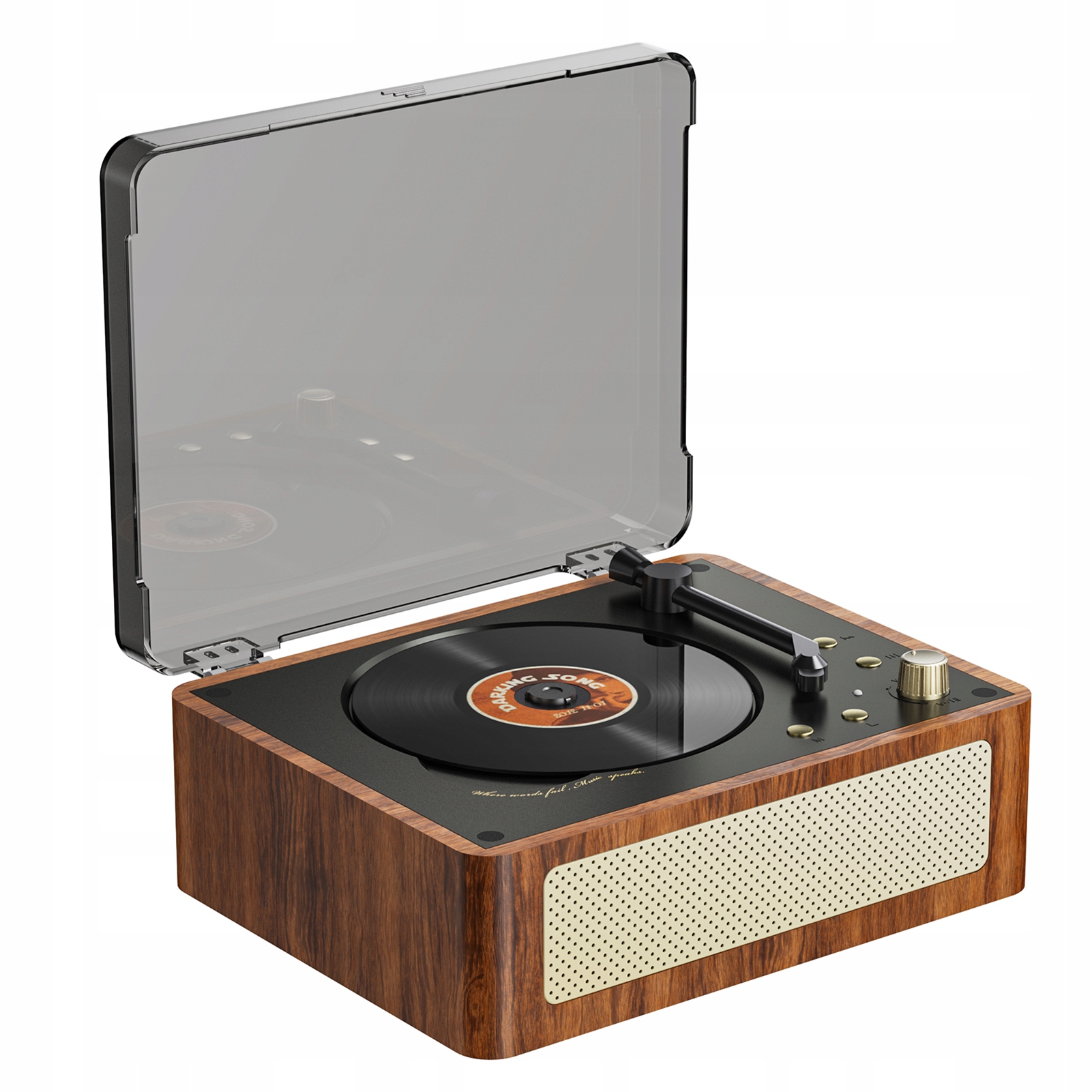 Особливості: 1. Вінтажний дизайн: добре зроблений дерев’яний корпус у стилі ретро ідеально поєднується з невеликим програвачем, а традиційний дизайн поворотного перемикача додає відчуття церемонії, повної художньої атмосфери та виглядає як програвач.