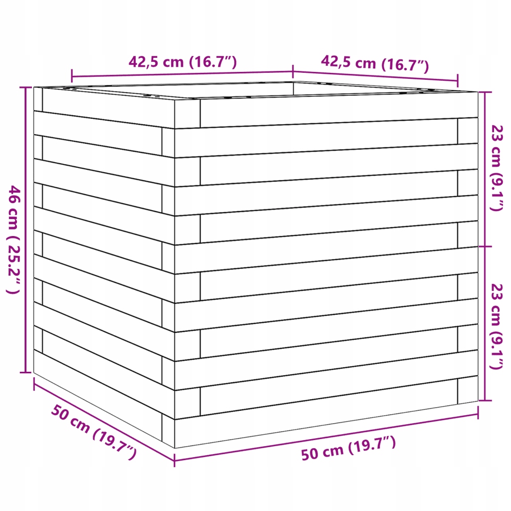 Дерев’яний садовий горщик 50x50x46 см, сосна іржа.