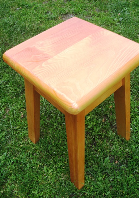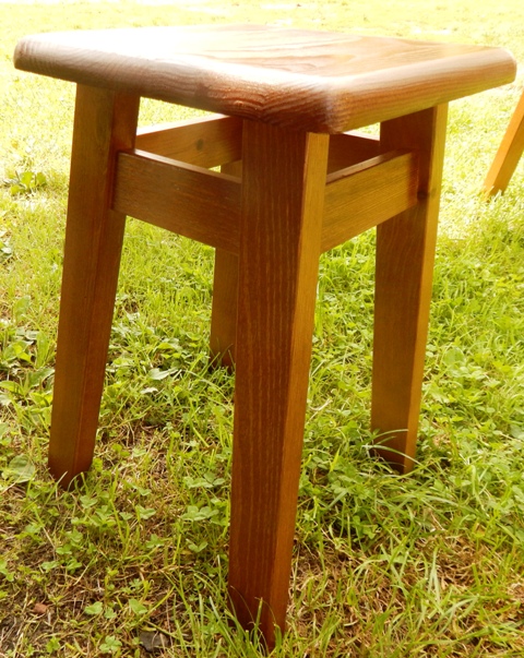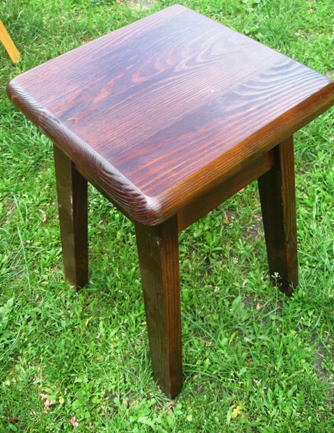 Табурет зроблений міцно. Пофарбована безбарвним лаком і морилкою.