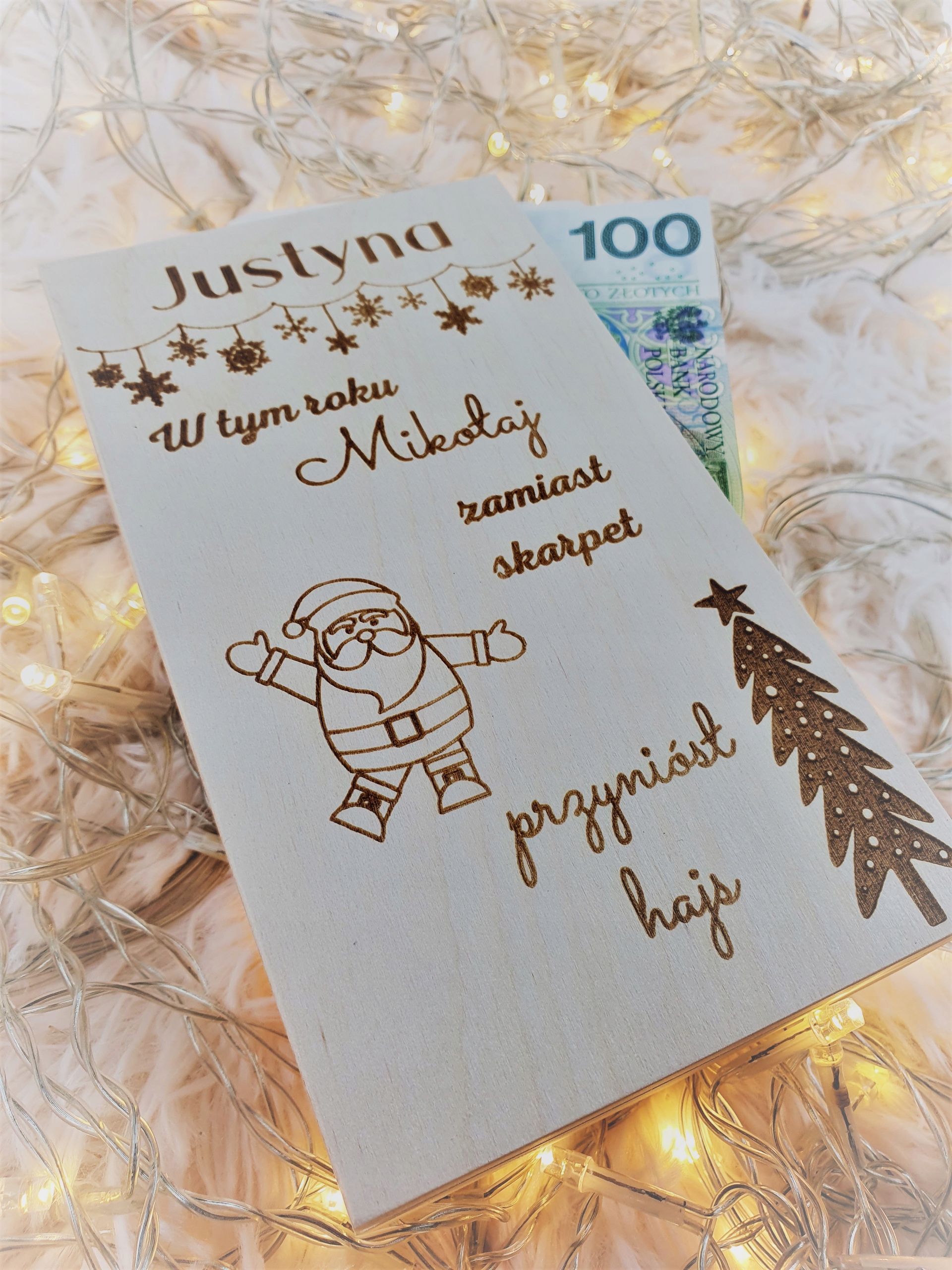 Дерев'яний ящик для грошей Ваучер Свята + ім'я
