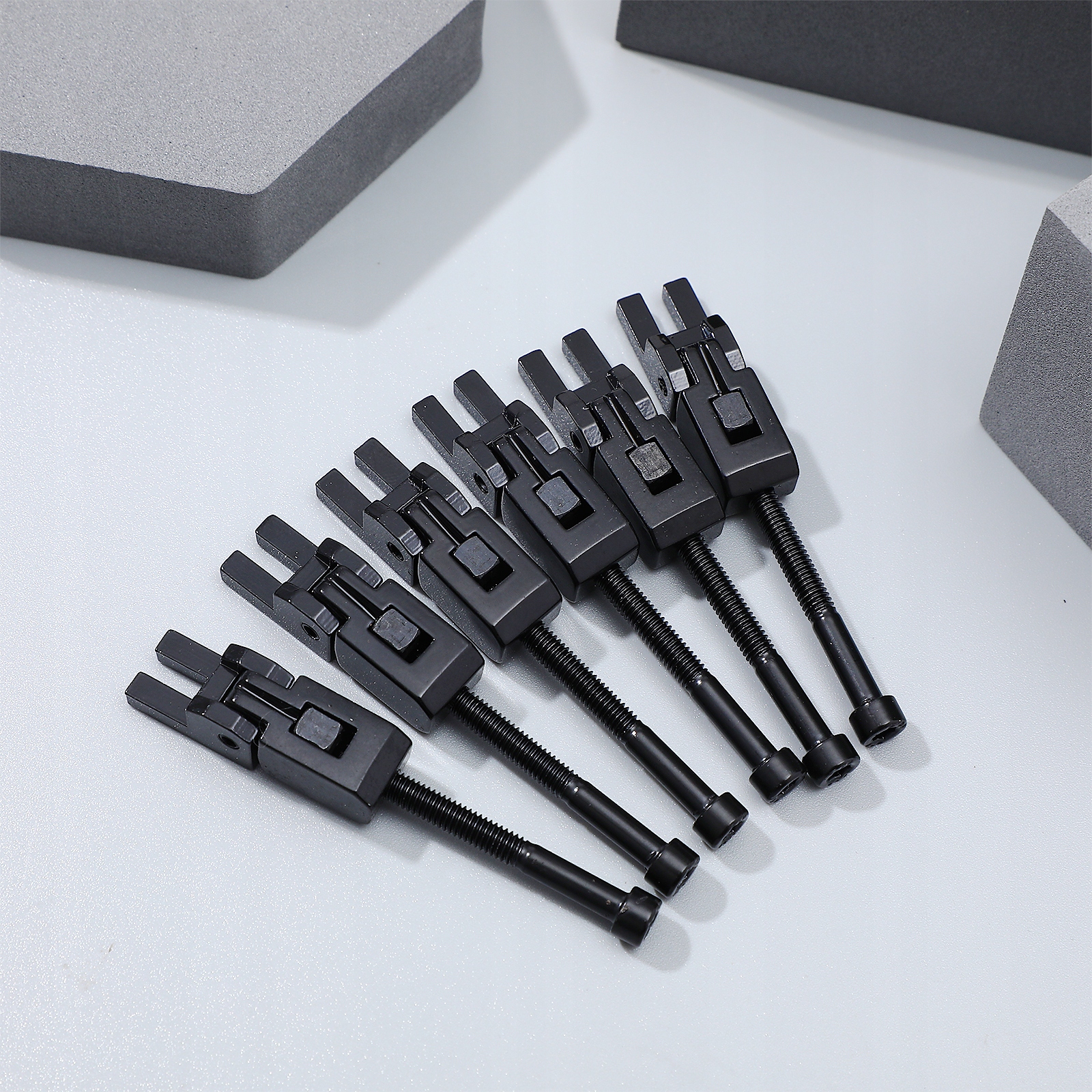 Це набір змінних тремоло-бриджів для електрогітари. Виготовлений з металу з чудовою обробкою та надзвичайно міцний. Міцна посадка для підтримки струн у тон. Ролики допомагають запобігти обриву струн, покращуючи тембр і підтримуючи гітару. Чудова якість, підходить для гітарного тремоло-бриджу.